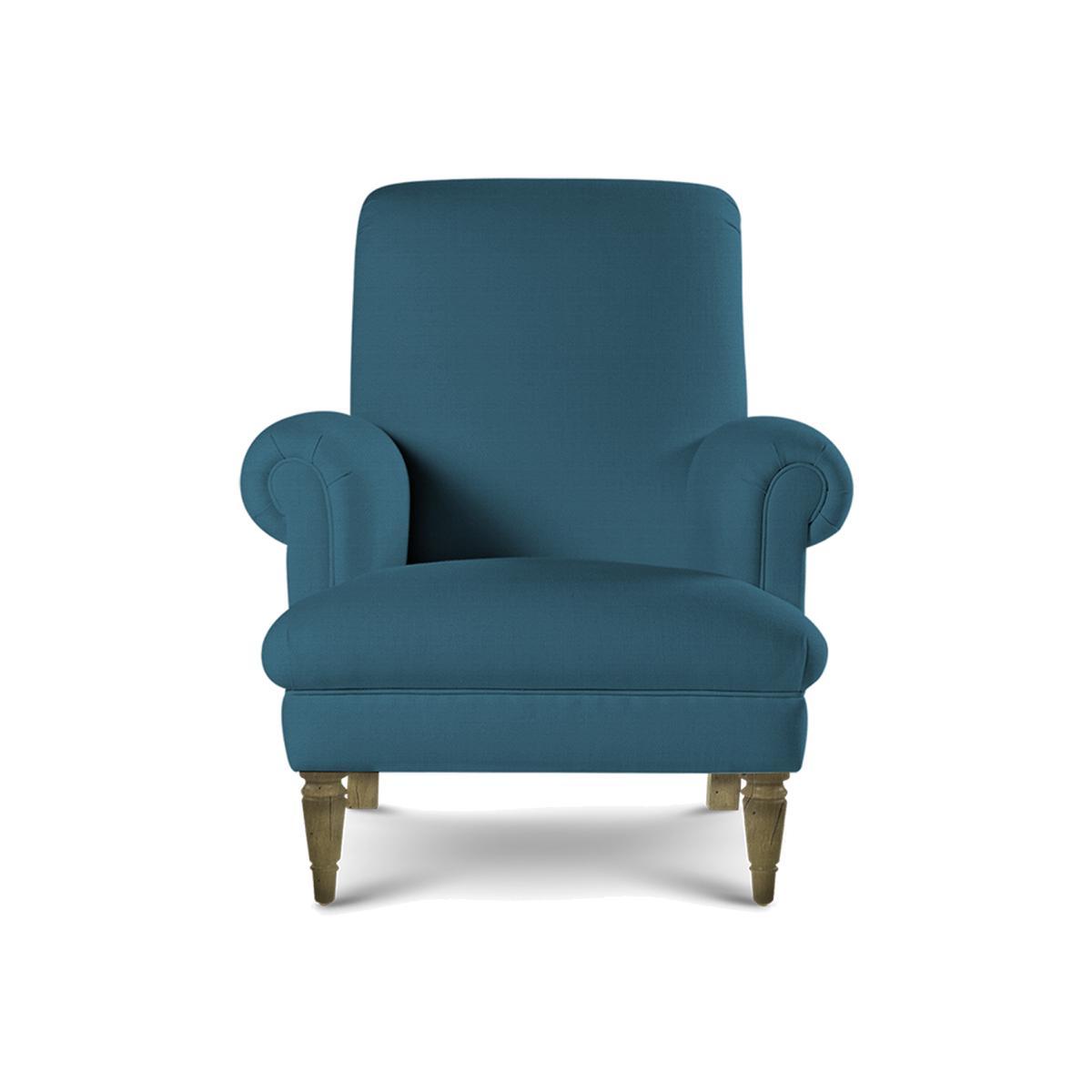 I love this armchair for its compact size and versatile colour, making it a great choice for both traditional and contemporary interiors. The Spanish Blue shade adds a subtle pop of colour without overpowering the space, making it suitable for living rooms, reading nooks, or even bedroom corners. Stylistically, it works well combined with neutral tones or paired with patterned cushions to create a cosy, inviting look. For practical styling, consider placing it next to a small side table with a lamp for a perfect reading spot, or use it as an accent piece in a layered colour palette to bring visual interest without clutter. Its petite size is ideal for smaller rooms or to create flexible seating arrangements, and its classic shape ensures it remains timeless and adaptable as your decor evolves.