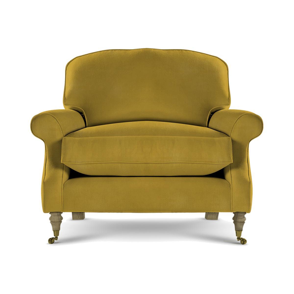 I love this chair for its inviting, vintage-inspired charm and its cheerful summer buttercup colour, which can really brighten up a neutral or muted interior. It’s versatile enough to work well in both contemporary and traditional settings, adding a pop of colour to a classic living room or a playful touch to a more modern scheme. Practical styling tips include pairing it with textured cushions in complementary tones or contrasting patterns to create visual interest. It also works well when placed near a statement coffee table or against a darker wall to make the colour really stand out. Keep the surrounding accessories simple to let this lively piece be the focal point of the room.