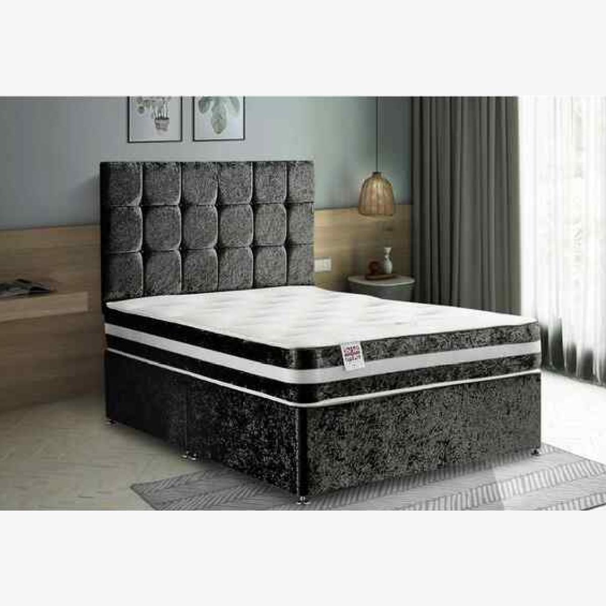 A contemporary style for any bedroom setting. This affordable yet quality divan bed comes with a 26 inch headboard, base and a memory spring mattress. This bed is available in 6 sizes and various fabrics and colours. There are storage options of having 2 drawers. The mattress is a 13.5 Open Coil Bonnell spring with a layer of responsive memory foam, hand tufted as it secures the classic mattress fillings and enhances the performance and life span. A medium to firm mattress with a depth of 10 inches this amazingly priced bed set represents great value for money.