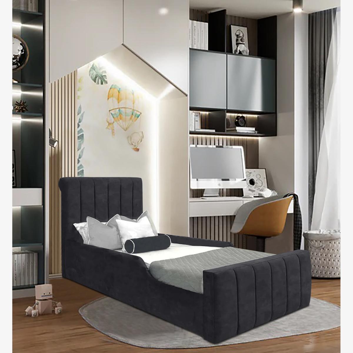 Delia Sleigh Kids Bed Plush Velvet with Safety Siderails - Steel / Double