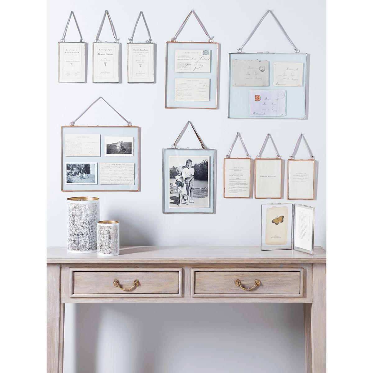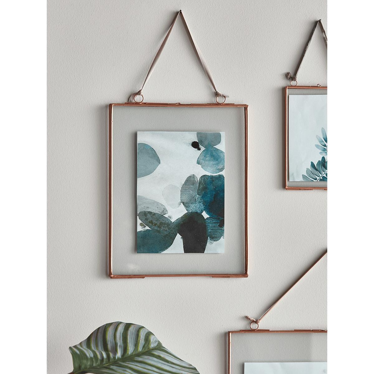 I love the delicate Hanging Glass Frame - copper for its minimal yet refined aesthetic. Its slim copper border adds warmth and subtle sophistication, making it versatile across various interiors. It works particularly well in both modern and boho spaces, especially when you want to showcase artwork, botanical prints, or family photos without overwhelming the room. Practical styling tips include grouping a few in different sizes for an eclectic gallery wall or hanging one as a standalone piece above a sideboard or console. Pair it with natural textures like linen or rattan for a cohesive look, ensuring the glass provides a clear, unobstructed view to highlight your chosen images.