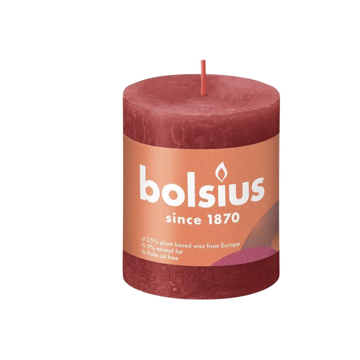 Delicate Red Bolsius Rustic Shine Pillar Candle (80 x 68mm) - Red