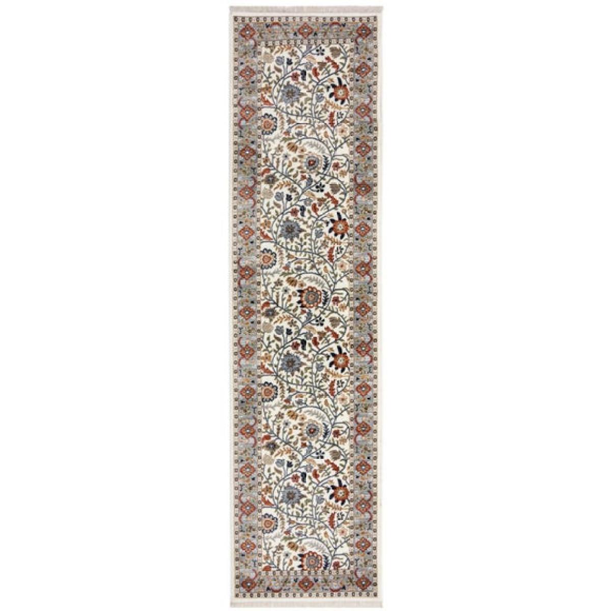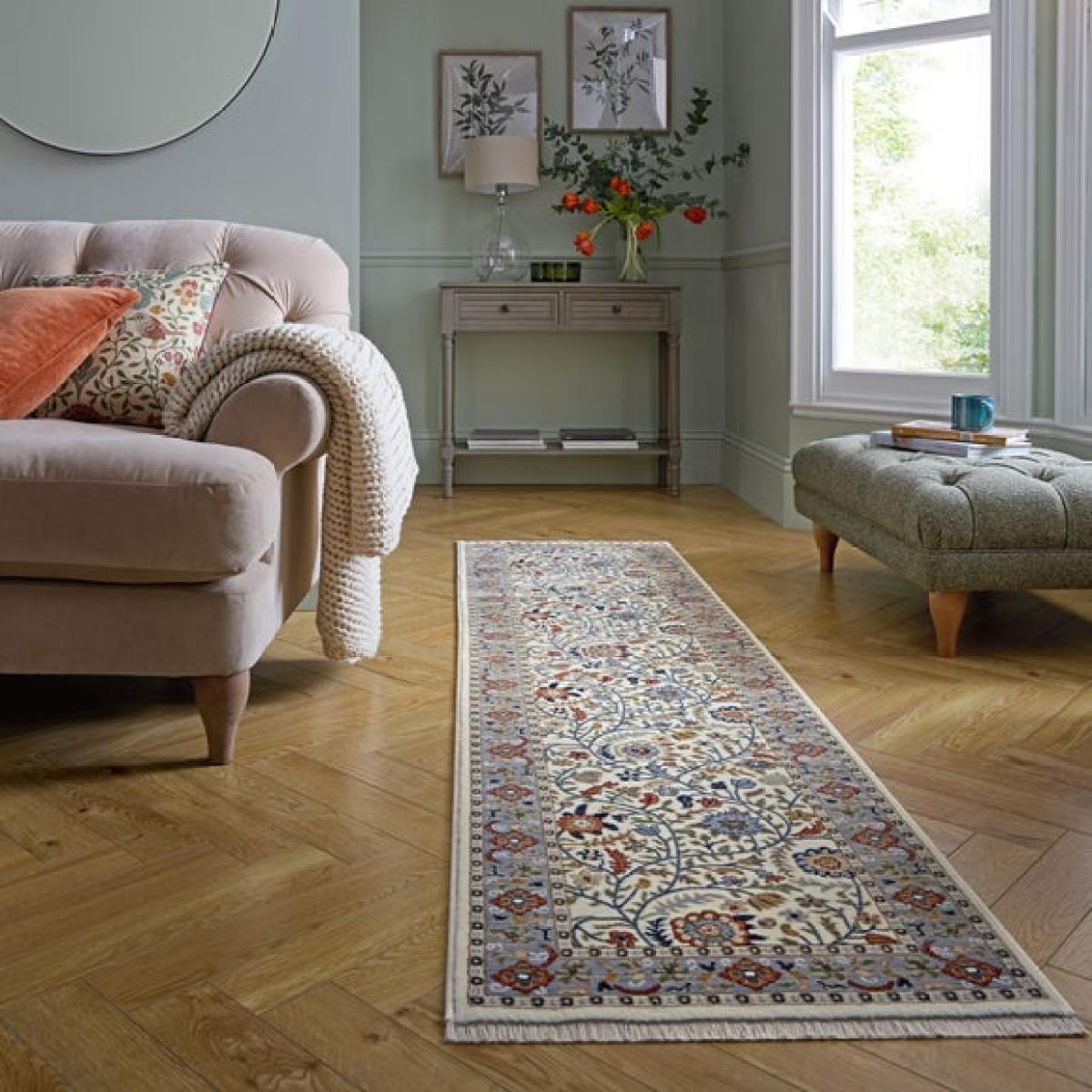 * Floral border design * Vintage look * Stain resistant Classic floral motifs blend beautifully with a statement border design in our Delilah Floral Traditional Runner. An ideal piece to add a vintage inspired touch to your hallway. The stain resistant pile means this rug is a great choice for busy family homes, without sacrificing the stylish design. Delilah is perfect for a home that loves bold pattern. The Rug Pictured is 60x230cm. Care Instructions: Unroll your rug and leave for 24 hours during first use. Maintain your rug by shaking to remove trapped dirt and debris. Vacuum regularly with a nozzle attachment. Cut any loose fibres with scissors, do not pull. For accidental spills blot immediately and spot clean with a damp white cloth, leave to dry and shake to fluff up the fibres. Add an anti-slip underneath your rug to prevent slipping. Rotate every few months to prolong the life of your rug.
