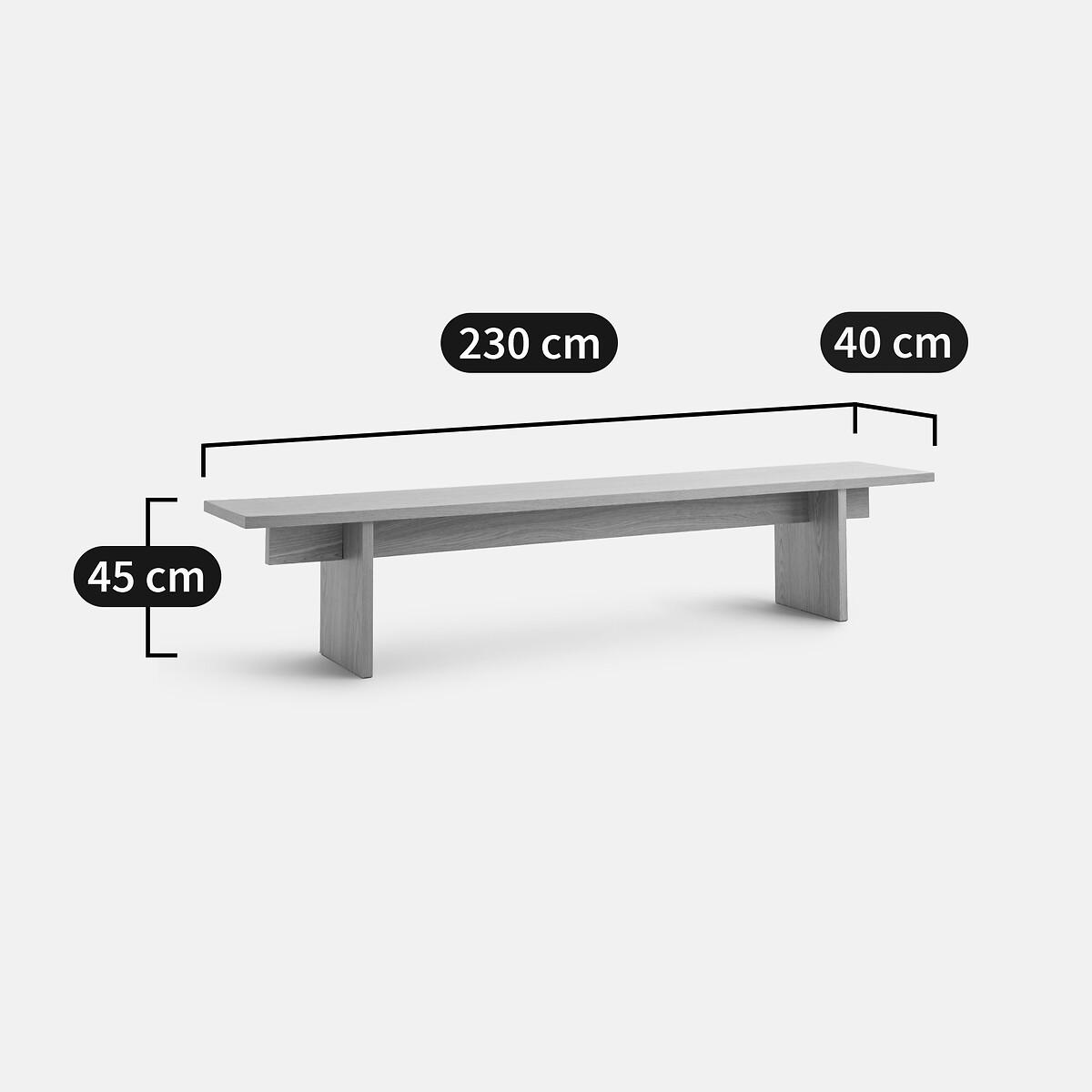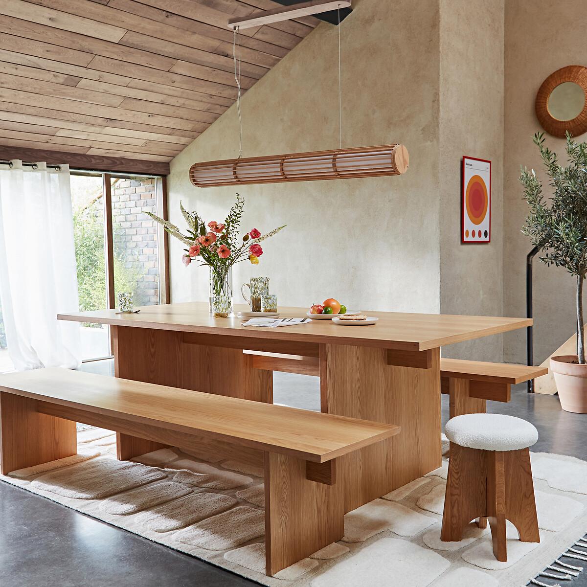 Robust, timeless, contemporary. The Deling bench is the ideal accompaniment to the tables in the range, for a dining room with character. And it promises to be a lot of fun. Designed by La Redoute Interiors. Product Details • Structure in oak veneered MDF, polyurethane finish • Legs in particleboard with oak veneer, finished with nitrocellulose varnish • FSC® certified wood • 3-Seater • People required for assembly: 2. Dimensions • Length: 230cm • Height: 45cm • Depth: 40cm • Distance between the legs: 157cm • Distance between the leg and end of bench: 33.4cm • Weight: 44kg • Requires some assembly (based to be attached). • WOOD FROM SUSTAINABLY MANAGED FORESTS. FSC® certified wood comes from forests that are environmentally, socially and economically well managed. Dimensions and weight of parcel1 parcel • L240 x H13 x D52cm. 49kg
