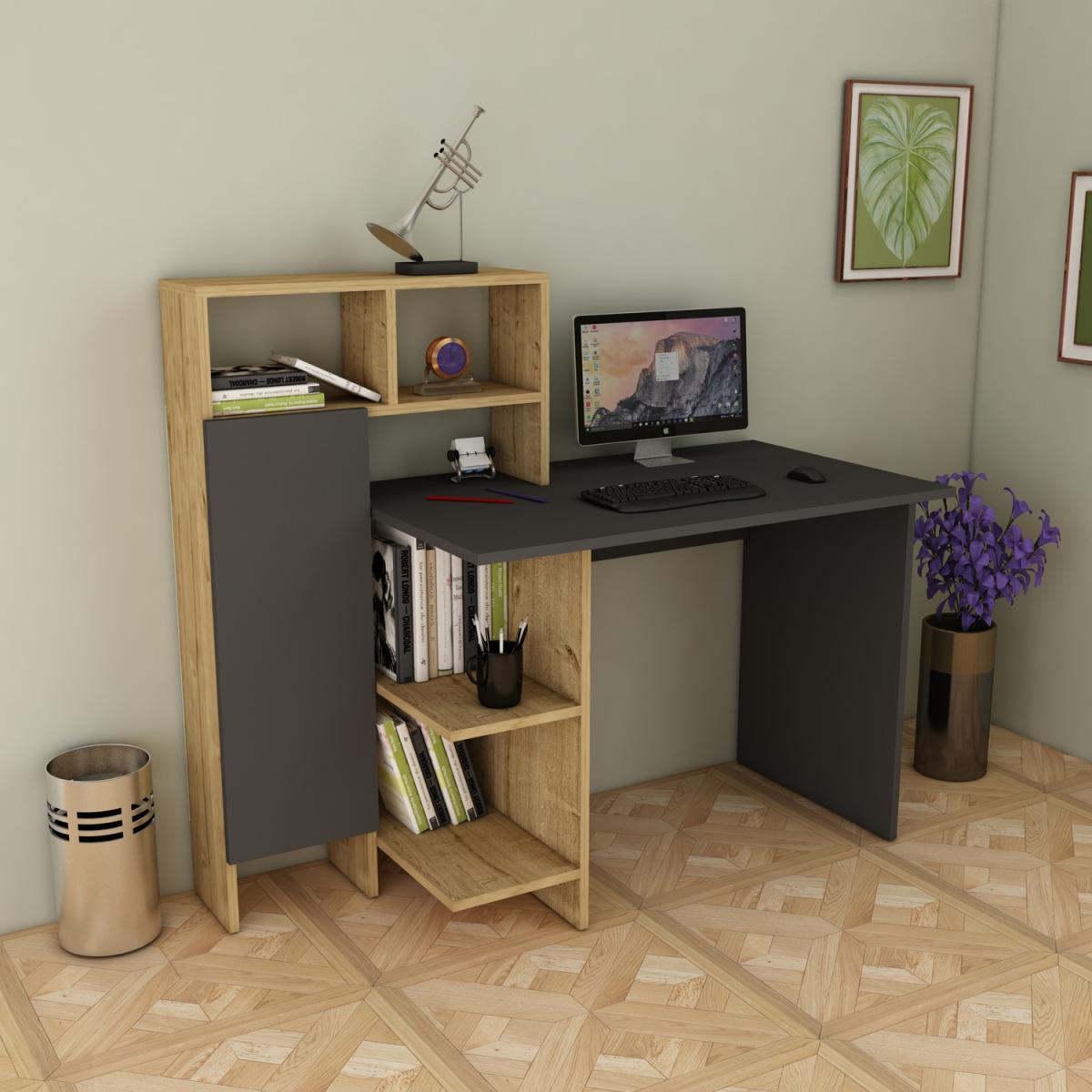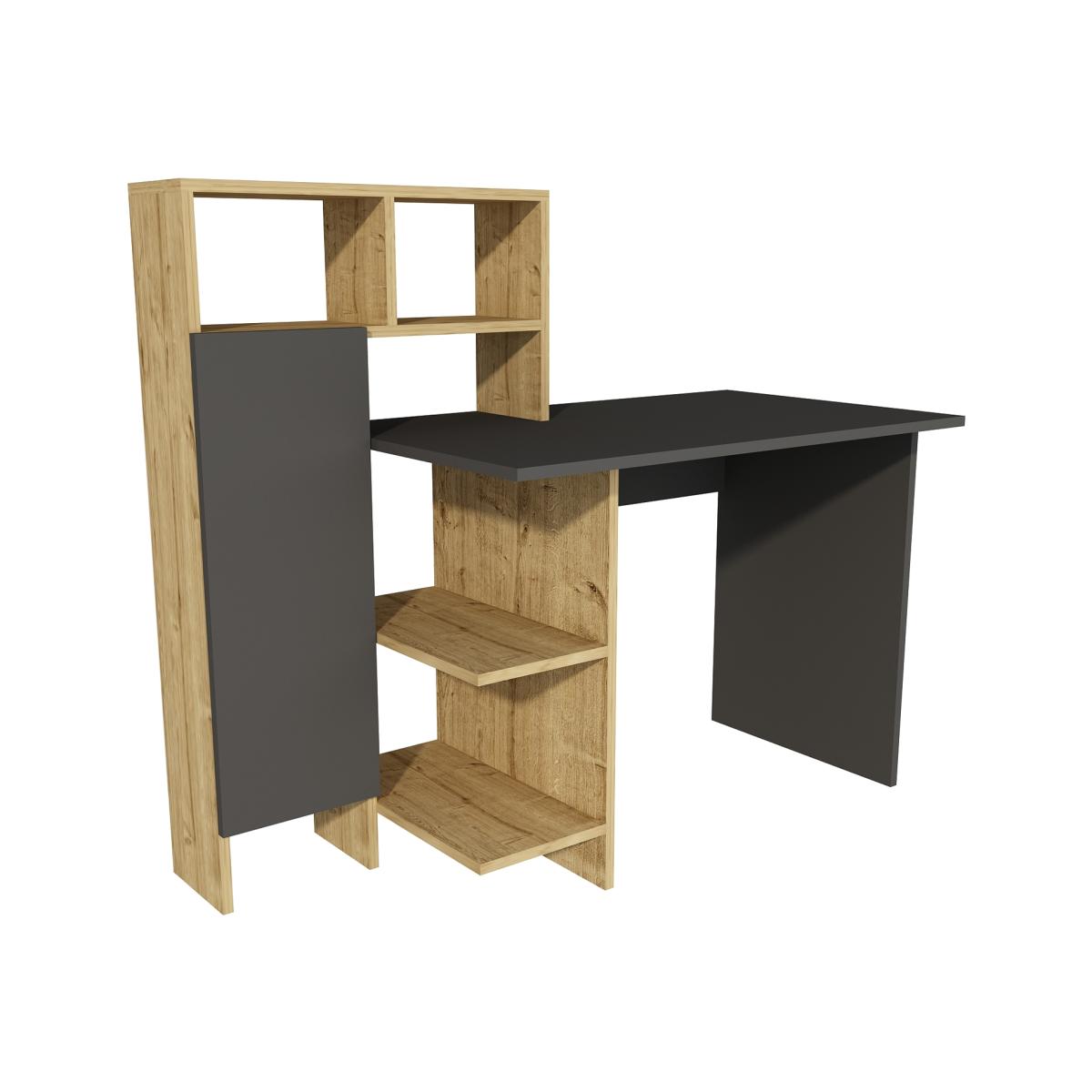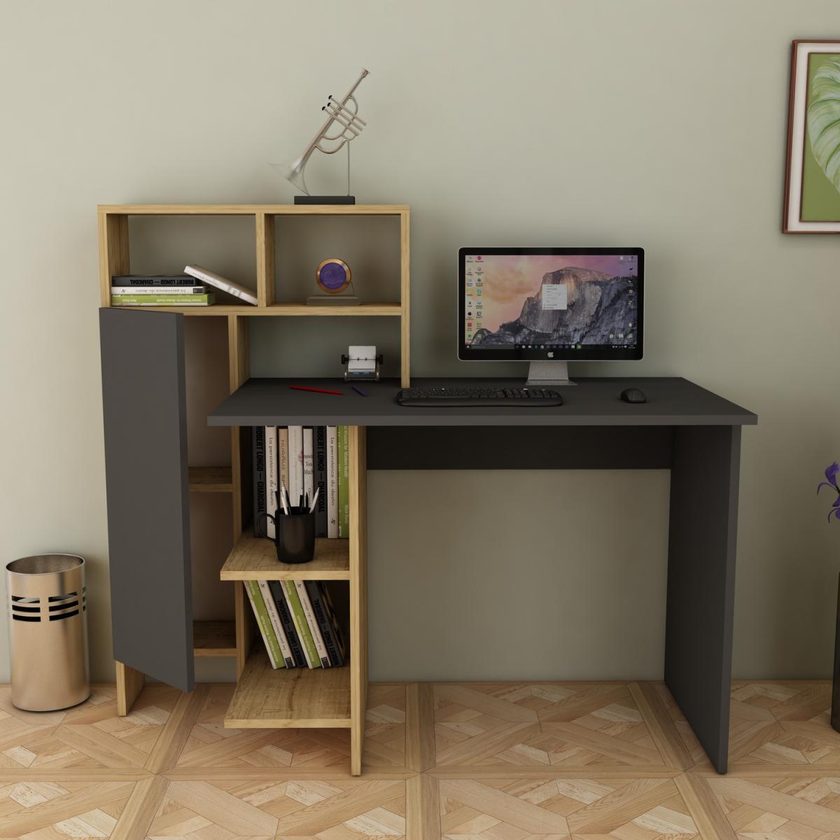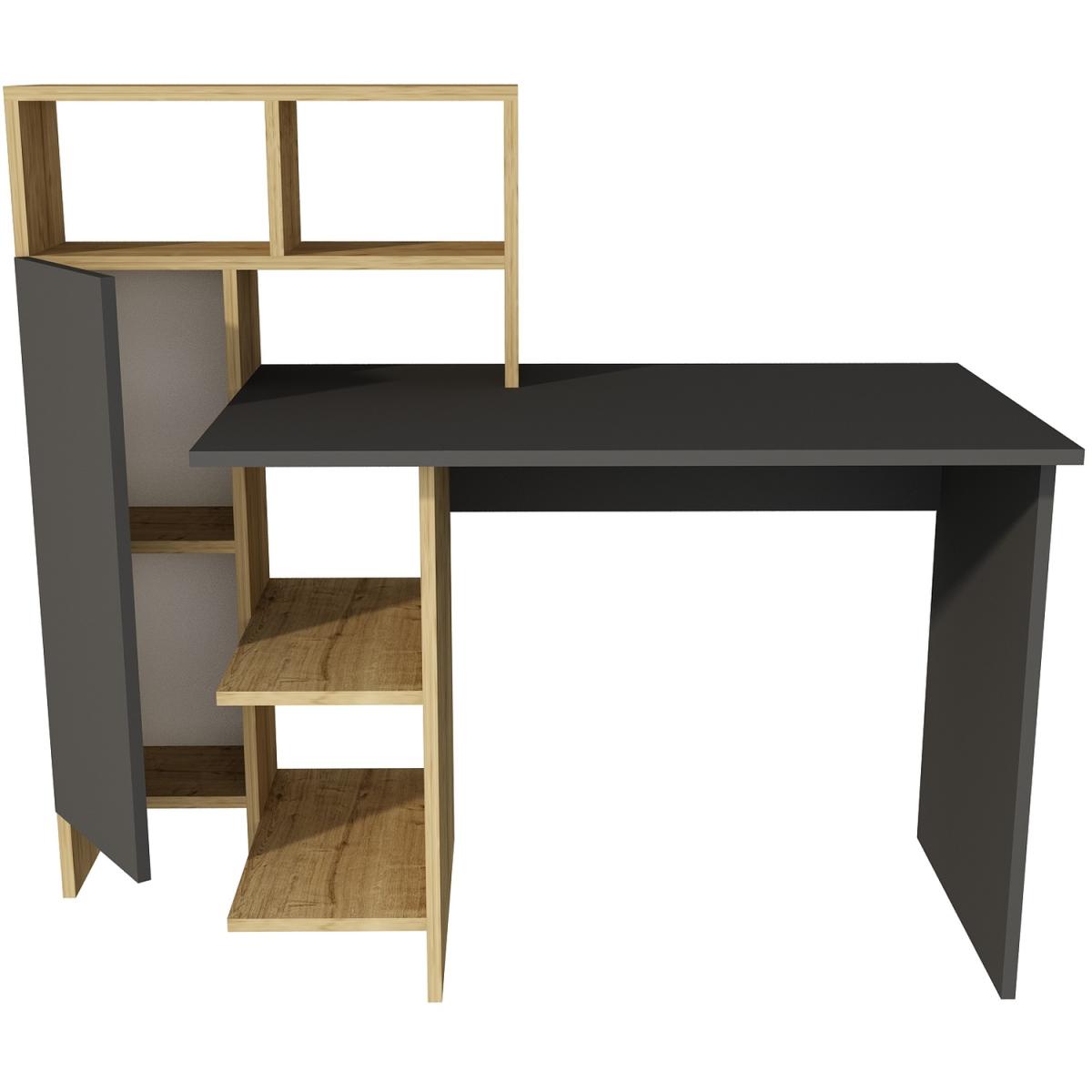 Delmaris Computer Desk with Shelves and Cabinet - Anthracite / PVC Particle Board Plastic Metal