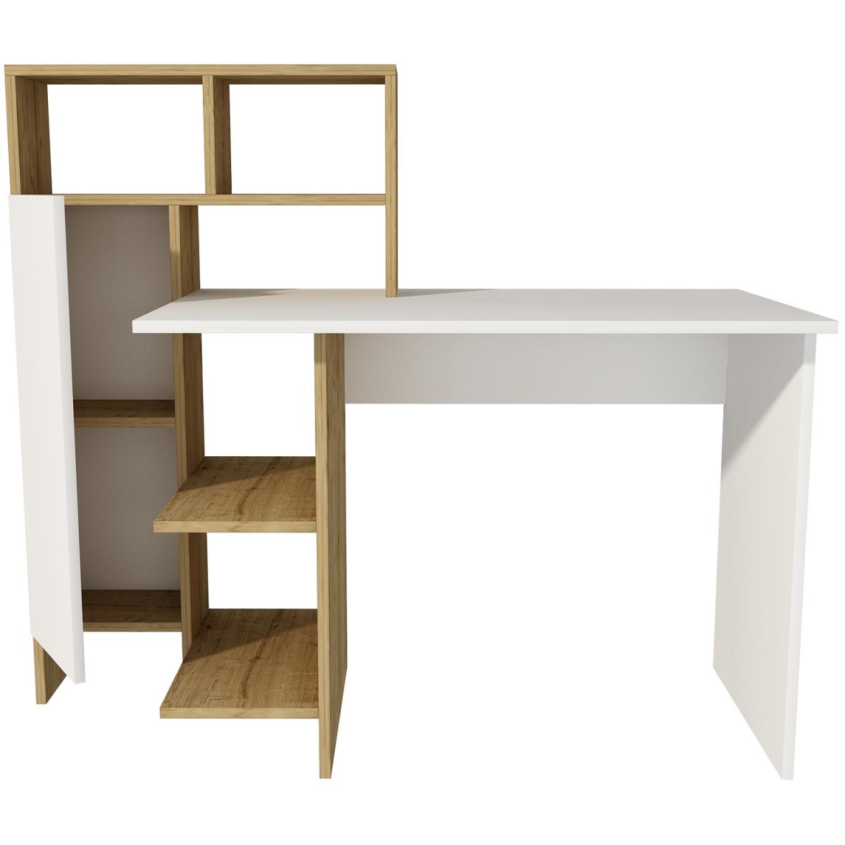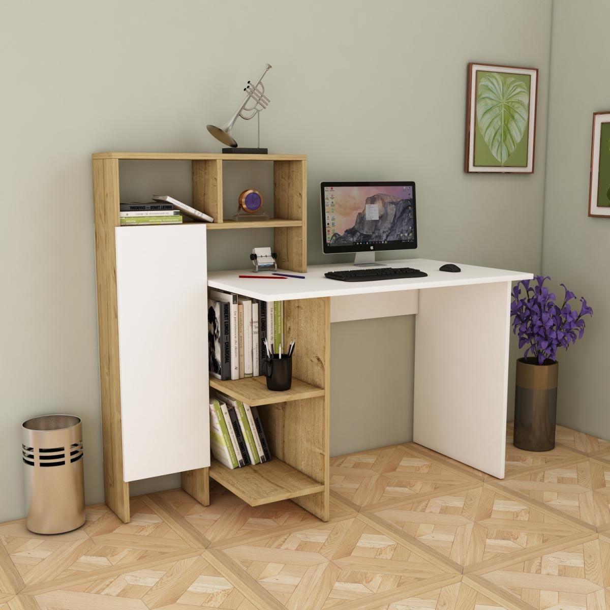 I really like this desk because it combines functionality with a modern aesthetic, perfect for contemporary homes or smaller spaces. The mix of sapphire oak and white gives it a fresh yet warm look that can sit comfortably in a variety of interiors, from minimalistic to more eclectic schemes. Its integrated shelves and cabinets make it practical for organising stationery, books, or tech accessories, which helps keep the workspace clutter-free. For styling, consider pairing it with a simple ergonomic chair and a few decorative touches like a desk lamp or small plant to add personality. It works particularly well in home offices or craft corners where multi-purpose furniture is a must and the clean lines offer a neat, uncluttered vibe.