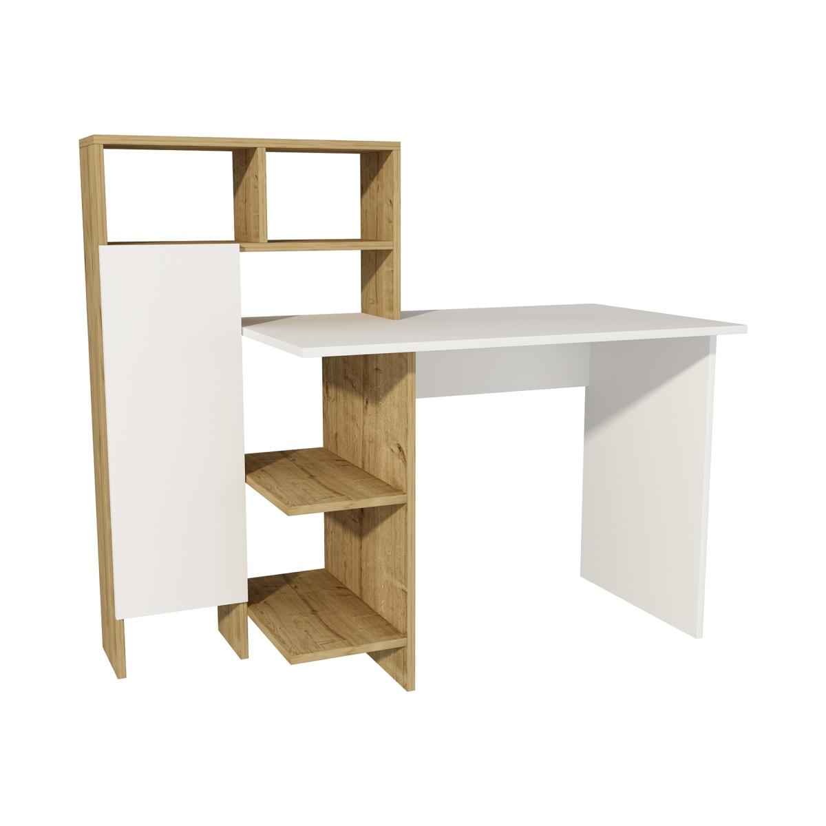 Delmaris Computer Desk with Shelves and Cabinet - Sapphire oak & White / Particle Board PVC Metal Plastic