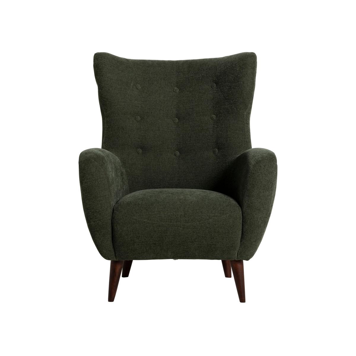 Upholstered In 100% Polyester, The Fabric Offers Exceptional Durability, A Soft Texture, And Easy Maintenance, Ensuring Long-Lasting Beauty And Comfort For Everyday Use. The Frame Is Expertly Crafted From Solid Wood, Ensuring Exceptional Durability, Stability, And Long-Lasting Quality While Providing A Strong Foundation For The Chair's Elegant Design. Delon Armchair, Green Fabric | Barker & Stonehouse