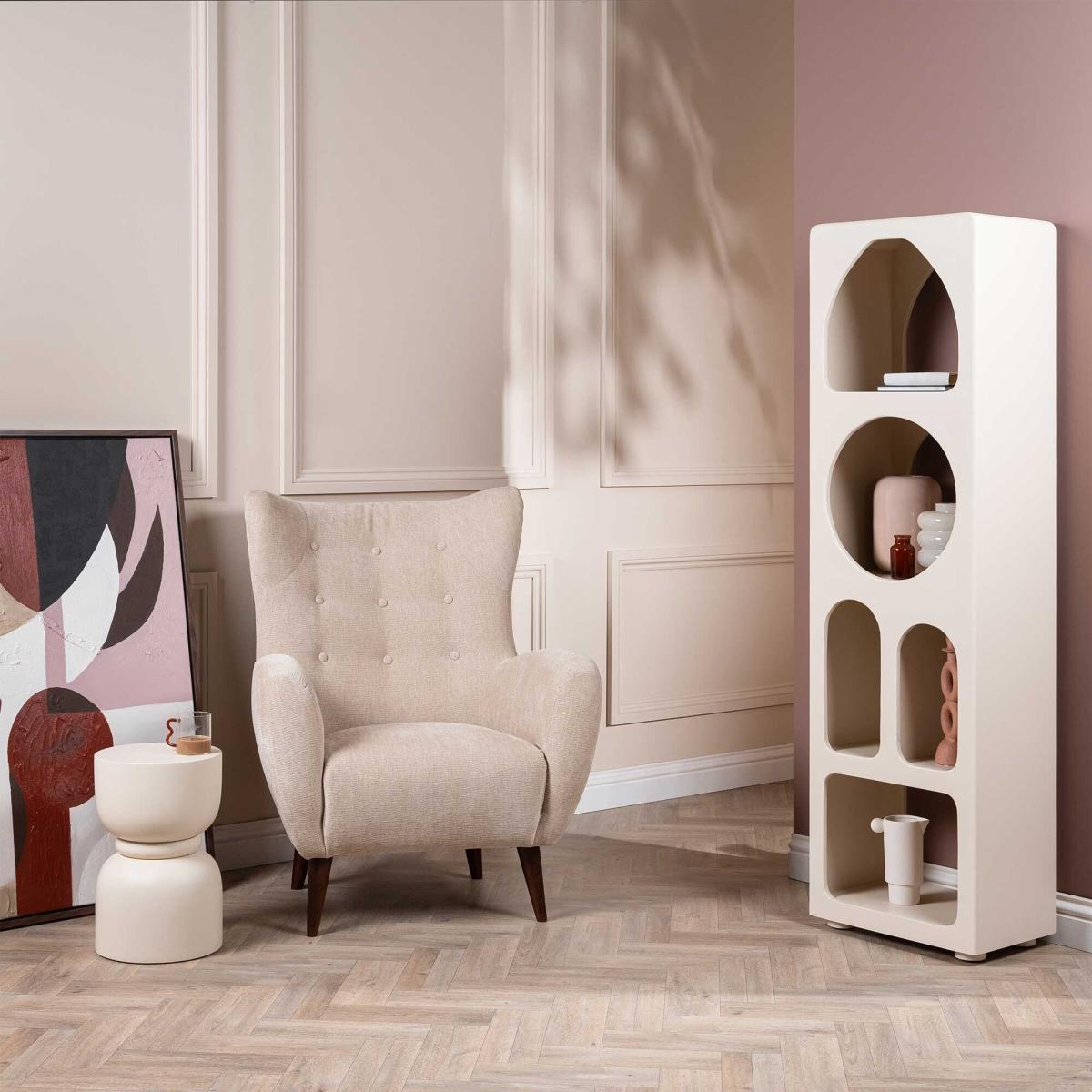 I’ve been using the Delon chair in a few schemes and its soft neutral wool blend and winged silhouette make it a versatile anchor in everything from Scandi-inspired living rooms to pared-back modern studies. The high back and button detailing give just enough shape without overwhelming a compact space. For styling, layer in a contrasting cushion - think deep teal velvet or a woven texture - and place beside a slim wooden side table to balance the chair’s curves. A boucle throw draped casually over one arm keeps the look lived-in, while a warm metallic floor lamp will finish the spot as a cosy reading nook.