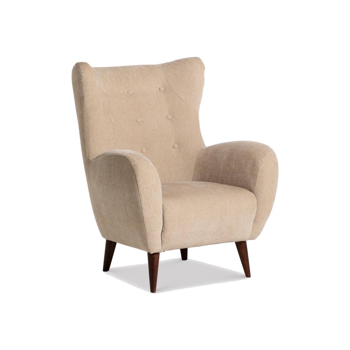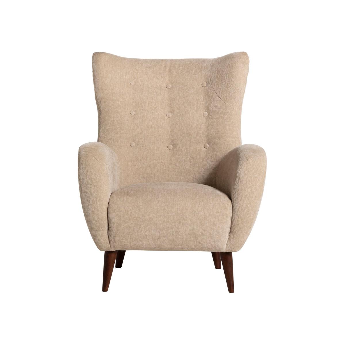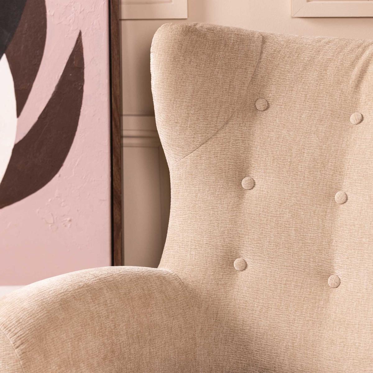 Upholstered In 100% Polyester, The Fabric Offers Exceptional Durability, A Soft Texture, And Easy Maintenance, Ensuring Long-Lasting Beauty And Comfort For Everyday Use. The Frame Is Expertly Crafted From Solid Wood, Ensuring Exceptional Durability, Stability, And Long-Lasting Quality While Providing A Strong Foundation For The Chair's Elegant Design. Delon Armchair, Neutral Fabric | Barker & Stonehouse
