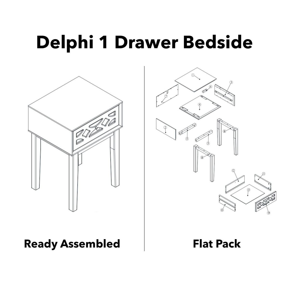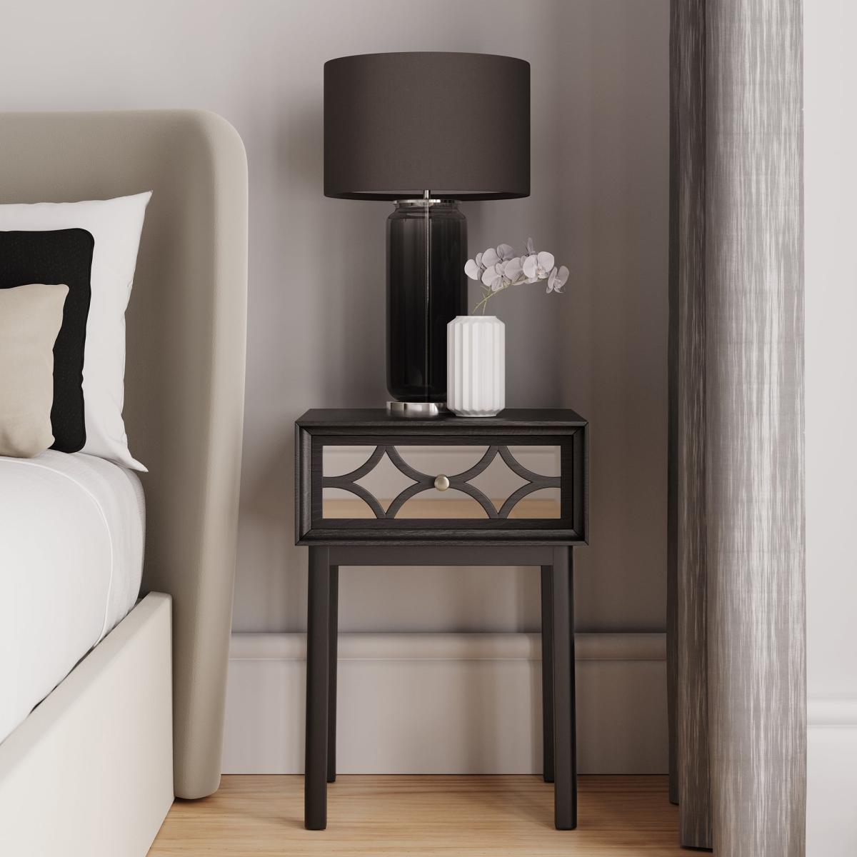 Delphi 1 Drawer Bedside Table, Mirrored Black