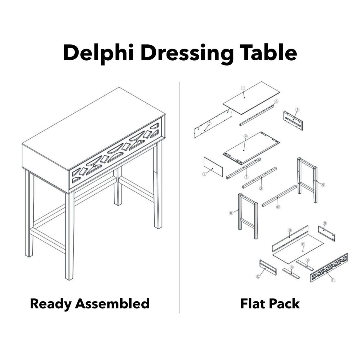 Dunelm Exclusive – Designed and Developed by Dunelm. Stylish and sophisticated, the Delphi collection boasts an elegant styling, perfect for adding a contemporary touch to your home. The range showcases the natural wood grain, whilst the carved pattern, mirrored fronts help to brighten your room and give the appearance of a bigger, lighter space. Crafted with solid wood legs elegant metal handles, the stylish Delphi Chest of Drawers features a spacious single drawer with wooden runners and is supplied fully assembled for convenience. Care Instructions: Avoid prolonged exposure to direct sunlight. Wipe up spills immediately with a damp cloth, avoid common hazards such as harsh solvents or abrasives. Maintain with regular dusting. Clean metal fixtures with mild, soap and water, dry thoroughly. Do not use a brass cleaner as this will damage the lacquer. Item available in two assembly options: fully assembled and flat packed.