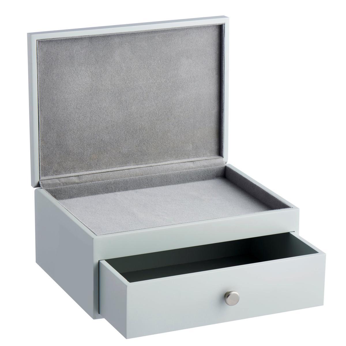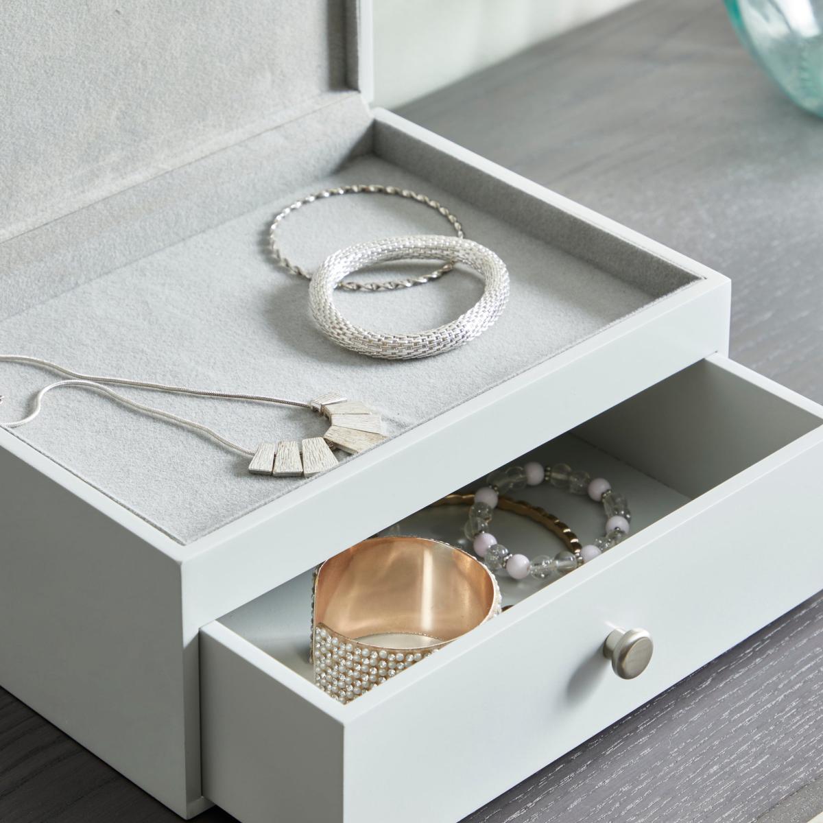 I love the Delphi Jewellery Box - it's a practical and stylish addition to any dressing room or vanity area. Its muted grey shade makes it versatile, blending seamlessly into both contemporary and traditional interiors. It works particularly well in spaces with a neutral or monochrome palette, adding a subtle pop of colour without overpowering the decor. For styling tips, consider using it on a clutter-free surface alongside other organised storage solutions or decorative pieces like candles or small plants. Its clean design lends itself to both functional storage for your jewellery and a neat display, keeping everything easily accessible while maintaining an elegant overall look.