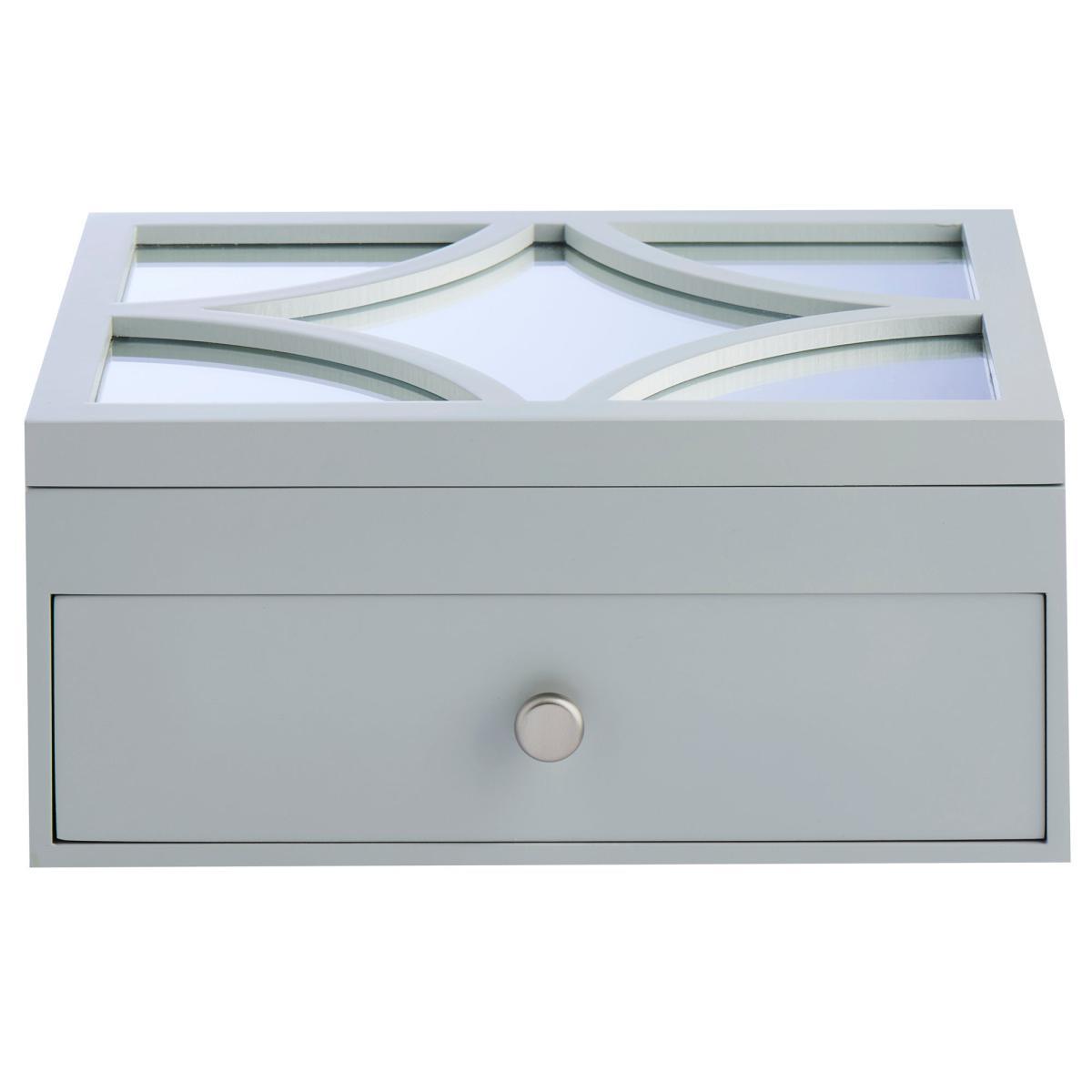 Made with a mirrored surface and patterned top, this stunning jewellery box has been designed in a painted MDF for a attractive look. With one compartment and extra drawer, this easy to wipe piece is ideal for all of your small jewellery.