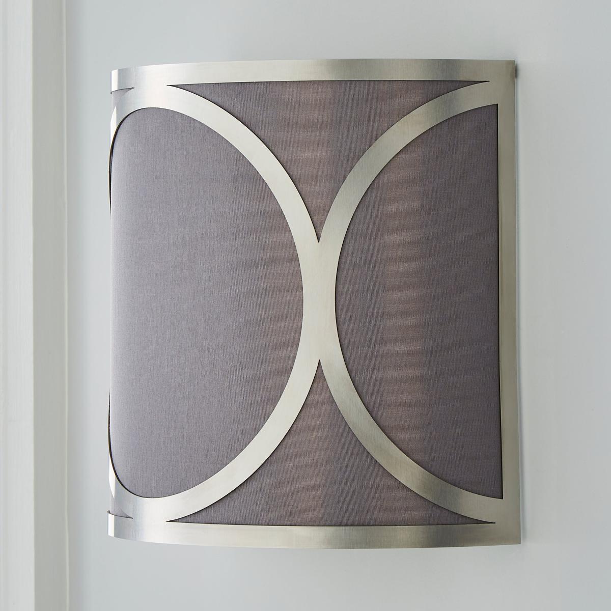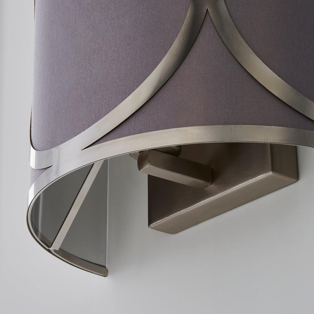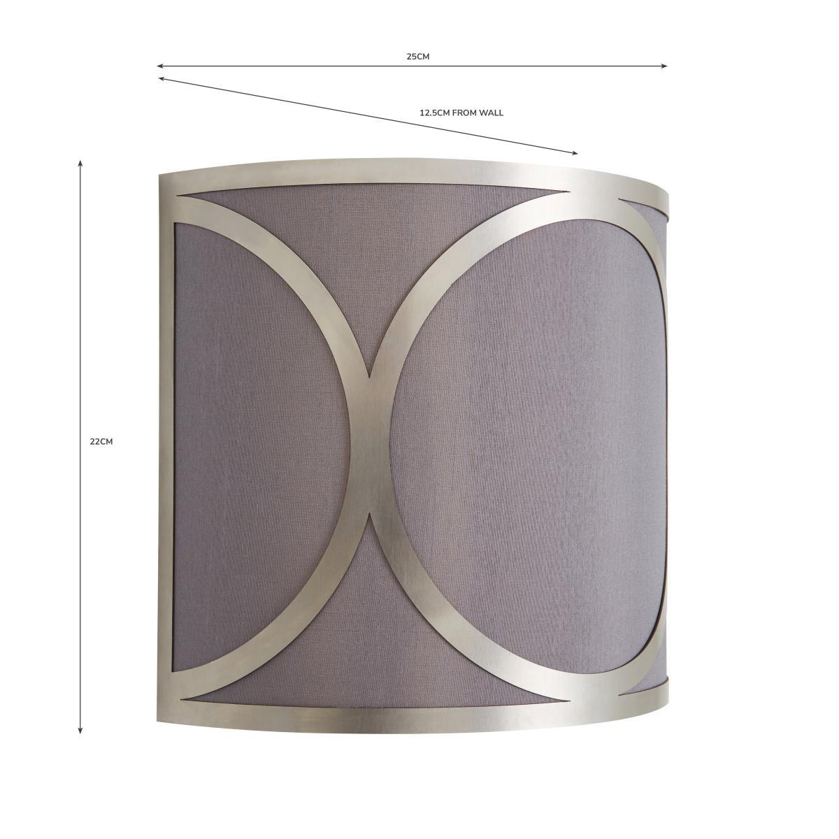 Introduce a modern and unique statement piece to your home with the stunning Delphi Wall Light. Whether it is paired with other pieces from the Delphi Range or hung alone, the simple grey colourway alongside the silver metal detailing will catch the eyes of both you and your guests. It has an attractive look and feel, made from faux silk and metal.