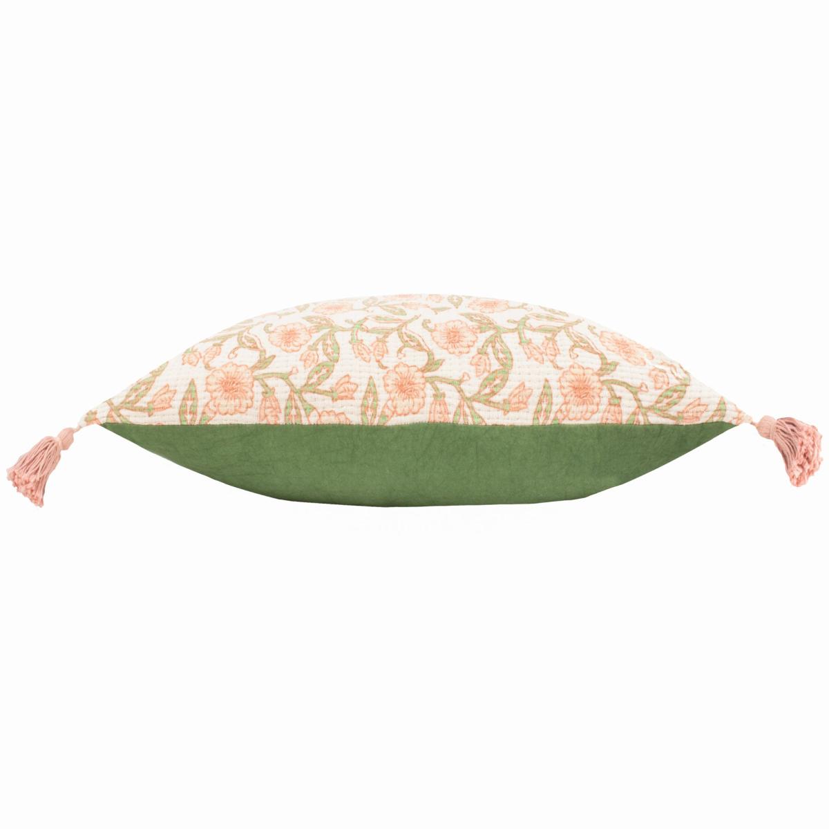 * Printed floral pattern* Slub cotton base* Different fillings available This cushion showcases a classic floral pattern, delicately printed onto a contemporary slub cotton base. This blend of old-world charm and modern sensibility makes this cushion an ideal piece for layering, adding depth and softness to your sofa or bed. Its soft-finished, plain cotton reverse enhances the design’s versatility, allowing it to blend seamlessly with other textures and patterns.