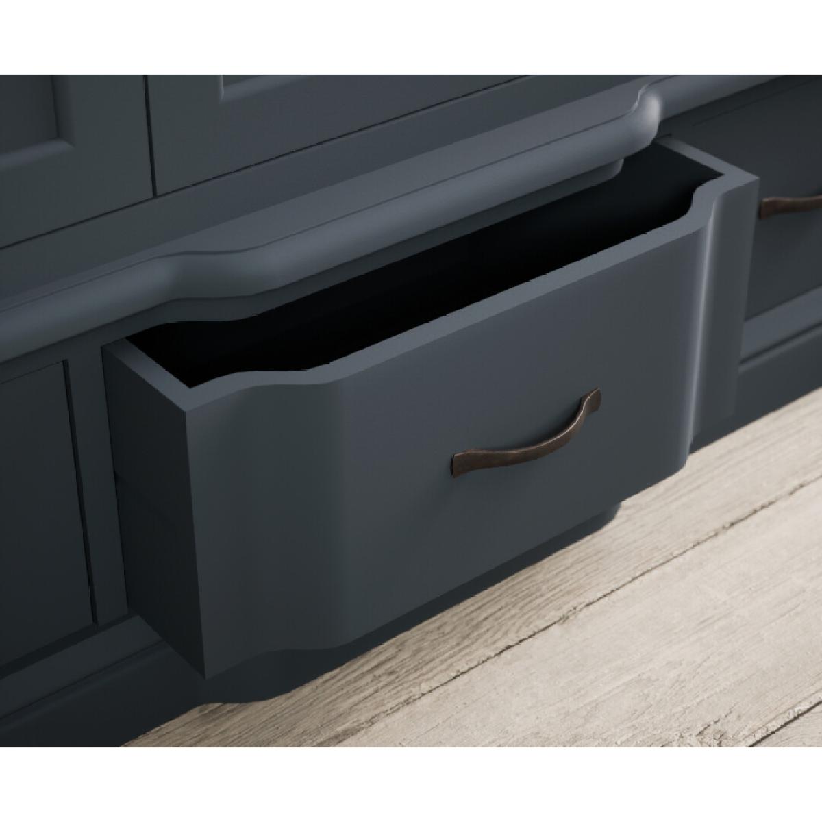 I really like this wardrobe because of its versatile colour palette and traditional design - the deep blue and oak top add warmth while maintaining a classic feel. It works well in both modern and transitional interiors, especially when paired with neutral or muted tones to make the colours pop. For styling tips, consider layering with open baskets or decorative boxes in the drawers for organisation, and adding some vintage or brass hardware to enhance its character. It’s a practical piece that can serve as a statement storage solution, especially in bedrooms or dressing rooms, and its colour makes it adaptable across various colour schemes.