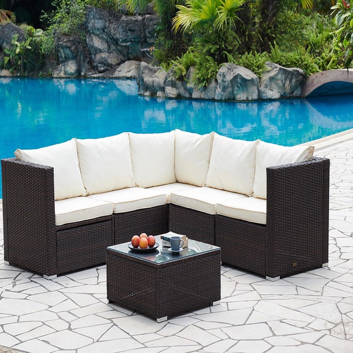 Introducing Delray a corners sofa and table set in rattan with foam-filled cushions made from waterproof polyester and add extra comfort to this beautiful garden set. This item comes with a glass coffee table as well as the corner sofa set, making it the perfect garden dining and lounging area. Each seating part is an individual module, the set is made up by putting the modules together. They DO NOT clip together but instead sit next to each other to make the corner unit. This garden set is durable and for outdoor use all year round in mild to warm weather. Although the cushions are weather-proof, we do not advise leaving them out in adverse weather conditions for long periods of time. We recommend the whole set be moved indoor over the winter. While the cushions have zips, we advise against removing the covers because they are challenging to put back on. If necessary, apply upholstery shampoo and store cushions indoors while not in use. Delivered by our friendly couriers within 1-3 working days. The courier will deliver to the main door of the building only on an all-day 7am to 7pm service with no time slots provided.