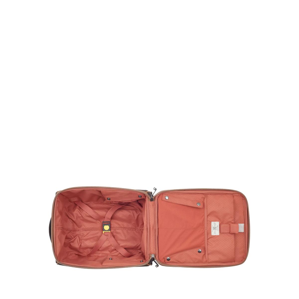 The DELSEY Chatelet Underseat Trolley Case is designed to allow you to travel with ease. With its flexible special loop on the back, you can group your luggage together and roll it along simply and easily as a single unit or use it on its own. This little case offers you great flexibility in use. Internally, you have a spacious main compartment to store your belongings and adjustable straps to keep your clothes in place. Organise the rest of your accessories in the inside pockets for ease.