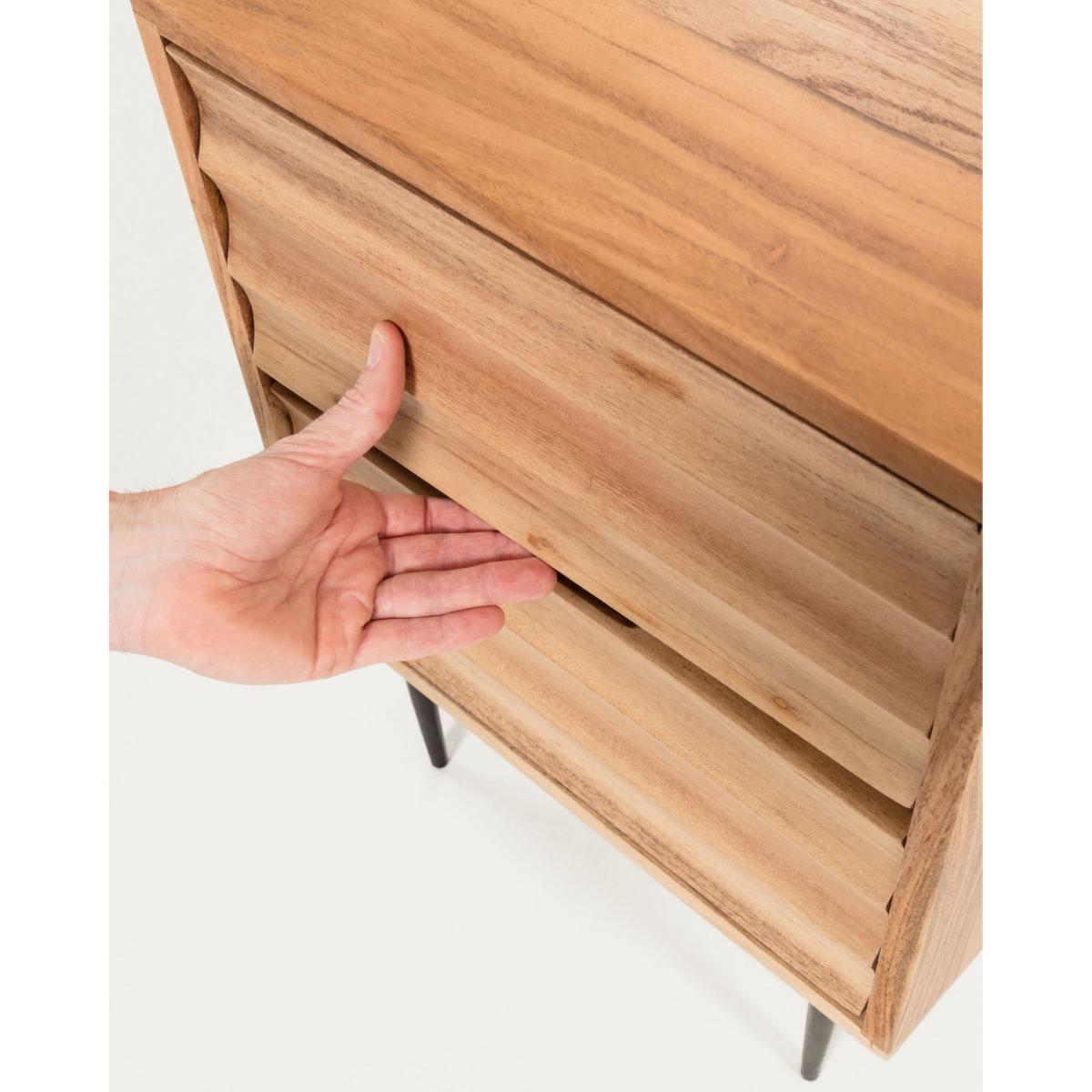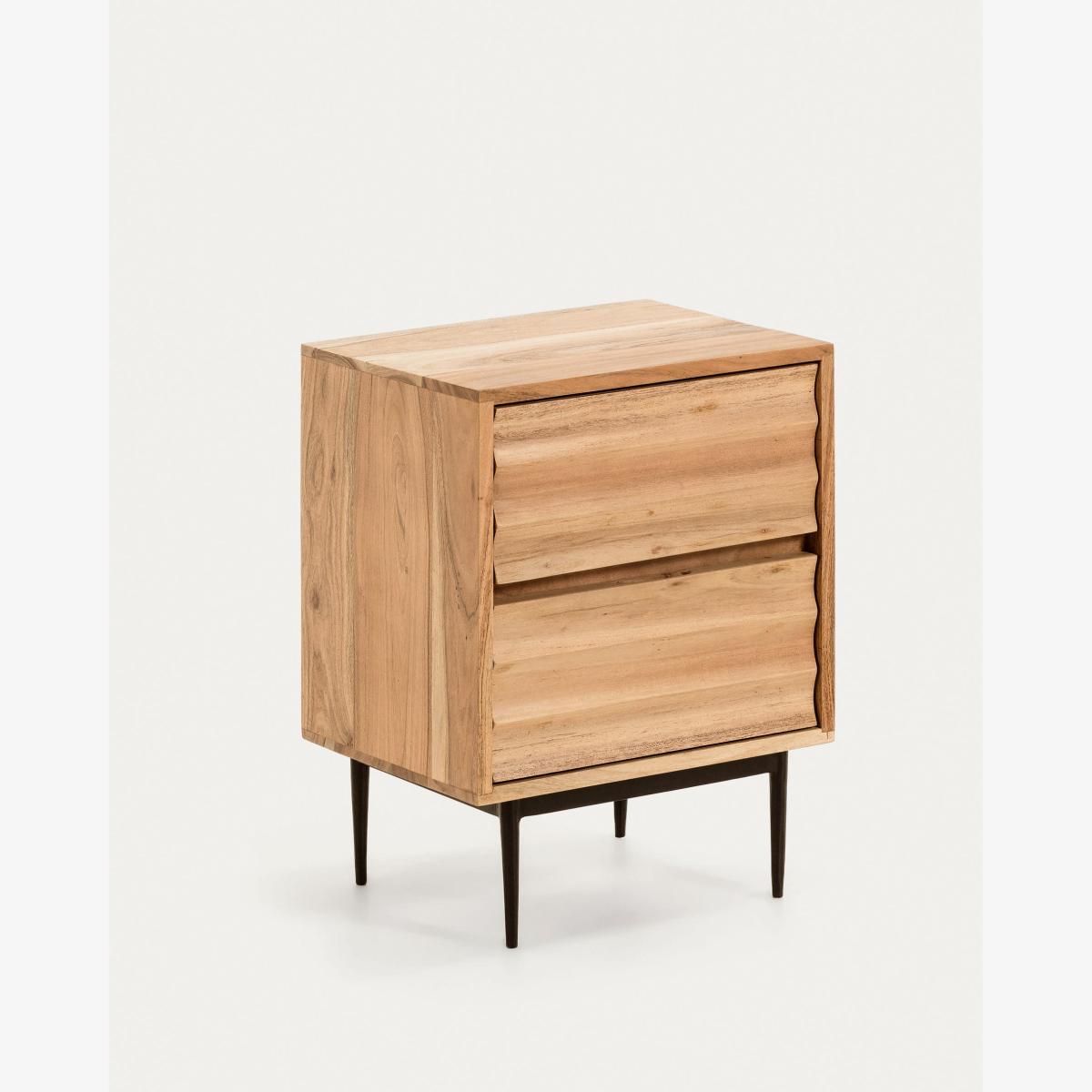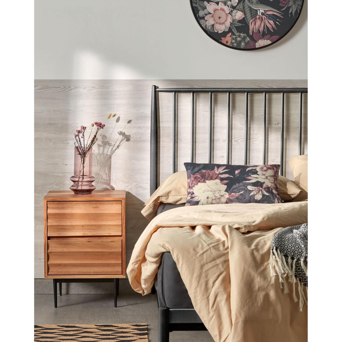 I really like this bedside table for its clean lines and natural timber finish, making it a versatile piece that complements both contemporary and Scandi-inspired interiors. Its compact size is perfect for smaller bedrooms or spaces where functionality is key without sacrificing style. I’d suggest styling it with a simple table lamp, perhaps a small plant or a stack of favourite books to keep it practical yet curated. It works particularly well in minimalist or modern schemes, but also adds warmth to rustic or boho bedrooms. To make the most of its design, keep clutter to a minimum on top, and consider coordinating with other timber furniture or black accents for a cohesive look.