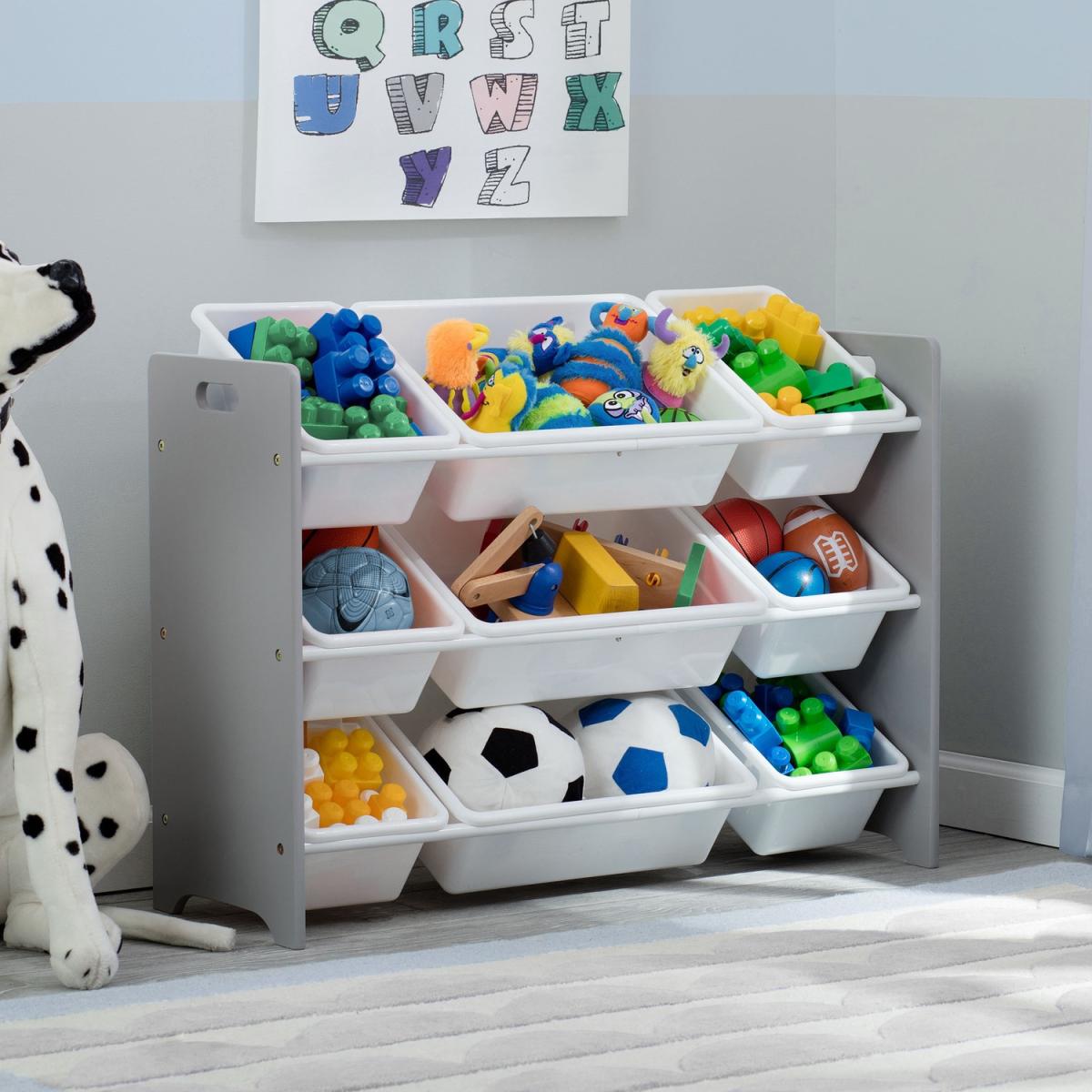 Store and organize toys, books, art supplies, dress-up clothes and more with our Kids Toy Storage Organizer. This storage unit features 12 sturdy bins in two sizes and will help organize any room in your house. Delta Children was founded around the idea of making safe, high-quality children's furniture affordable for all families. They know there's nothing more important than safety when it comes to your child's space. That's why all Delta Children products are built with long-lasting materials to ensure they stand up to years of jumping and playing. Plus, they are rigorously tested to meet or exceed all industry safety standards.