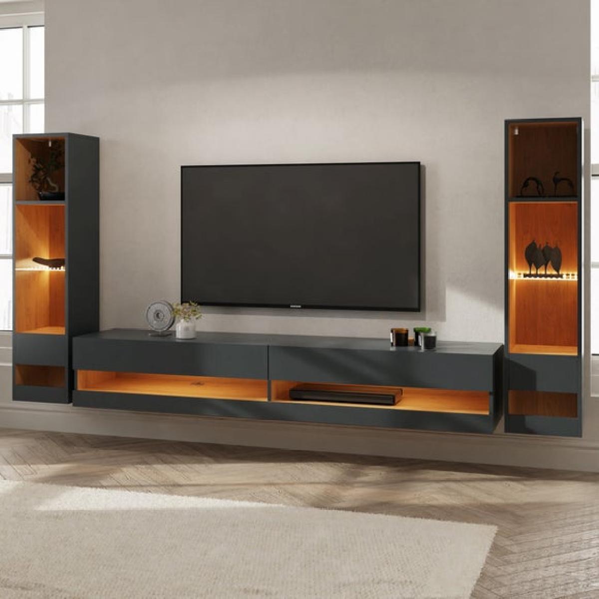 * Modern TV unit * Wall mounted * Sheen finish Designed for larger living spaces, the Delta TV unit is a bold, modern statement with its wall-mounted design and generous proportions. The open shelving is ideal for displaying media devices, books or decorative pieces, while the sleek finish adds a touch of sophistication.