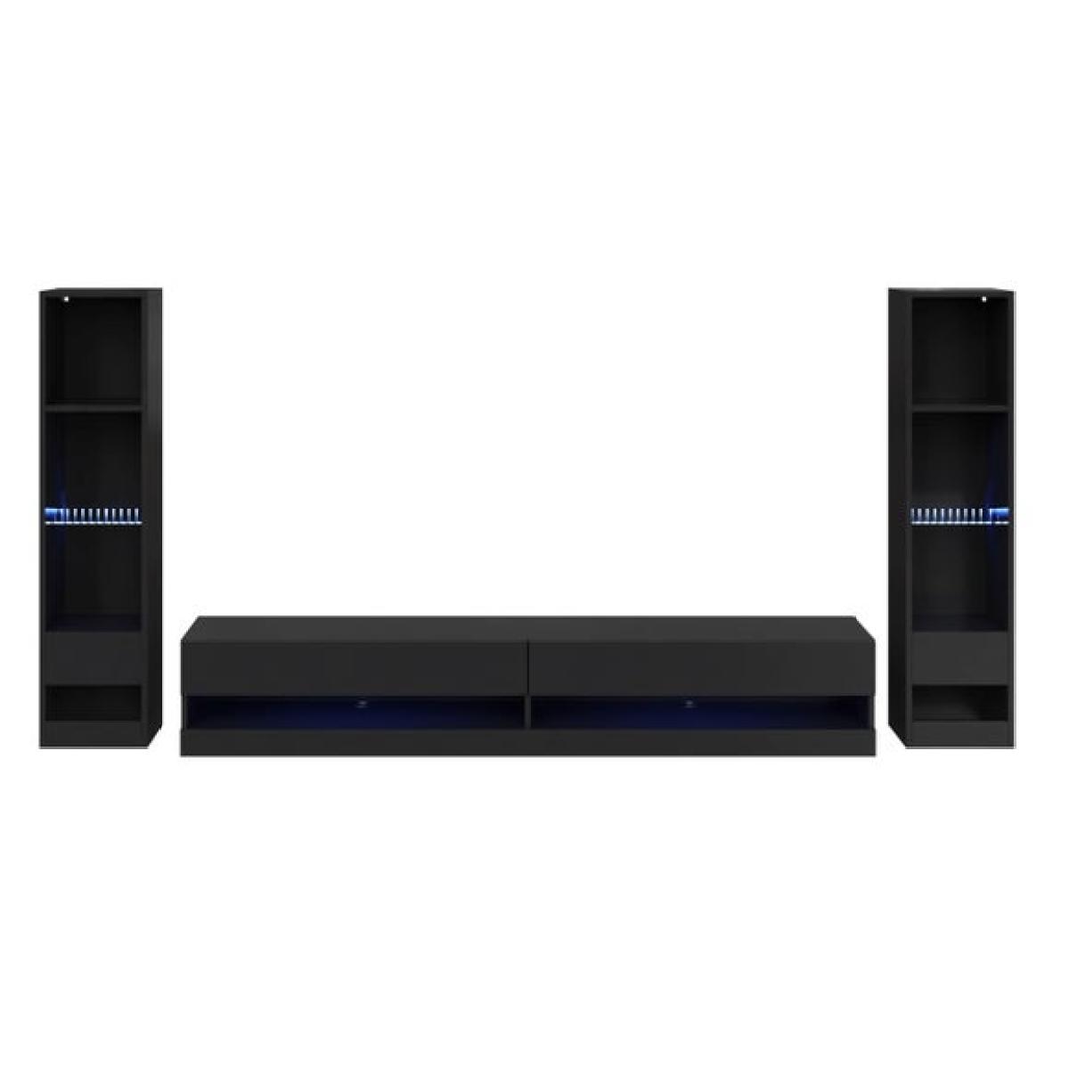 I love this TV unit for its streamlined, contemporary look that suits a range of interiors, from minimalist to modern. Its extra-wide design offers ample storage without feeling bulky, providing a sleek spot for your TV up to 75 inches while maintaining a balanced aesthetic. The black finish pairs well with both neutral palettes and bold colour schemes, adding a subtle touch of sophistication. For styling tips, consider adding a few decorative objects or books on top for visual interest, and utilise the open shelving with LED lighting to highlight favourite pieces or organise electronic accessories neatly. It works particularly well in open-plan living areas or media rooms where functionality meets style, making it an essential piece for a clutter-free space.