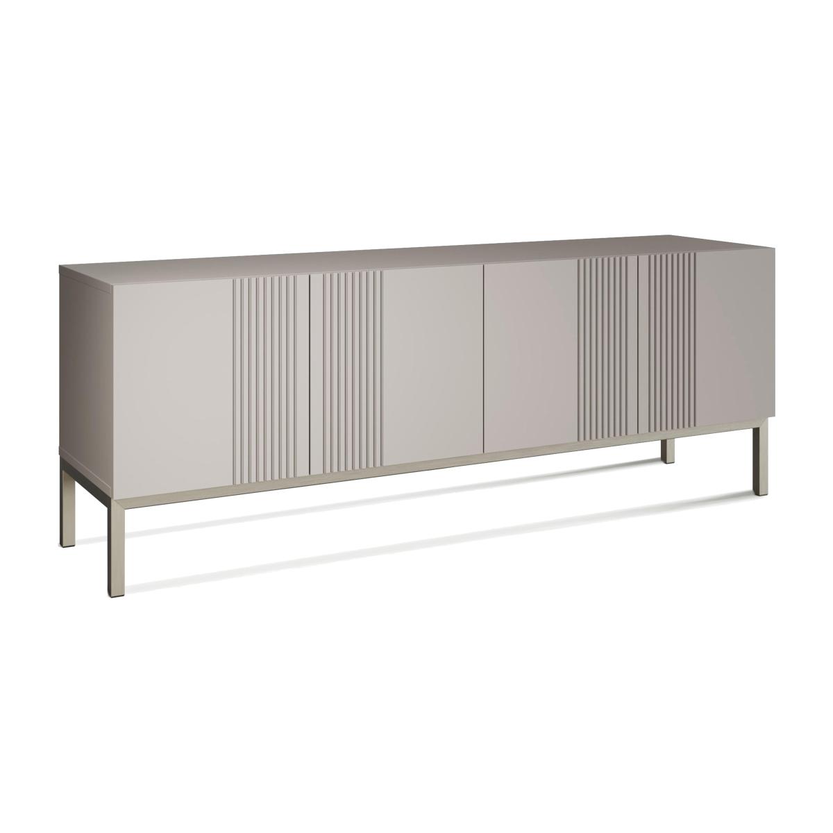 The furniture in our Delta range is beautiful – and this time it’s more than skin deep. A truly innovative range, Delta combines contemporary design with high-tech features that include built-in mood lighting operated via smart speaker or phone app, wireless phone charging, and Intelligent Eye media storage. Technology is seamlessly integrated into a design aesthetic that makes a quiet statement. Clean and linear, pieces have a painted satiny finish with subtle fluting detail and brushed nickel legs. All that plus spacious well-designed storage. The Delta range is only available online at Furniture Village. This large TV unit wows from all angles. It looks fabulous, sleek and contemporary, and incorporates some really innovative features including Intelligent Eye technology and ambient mood lighting. Why you'll love it Large TV unit brings high-tech style to your living room. The ultimate in contemporary furniture design. Built-in mood uplighting controlled via smart speaker or phone app. With Intelligent Eye technology – remote controls work even with the doors closed. Painted top and front with smooth satin finish. Fluted door fronts and brushed nickel base. In a choice of stylish colours. Seamless interior finish in the same colour. Easy click-together self-assembly. A Furniture Village online exclusive. This large TV unit is part of the Delta range. What you need to know 2 double-door cupboards each with 1 adjustable shelf. The finish may show small surface scratches, a result of the finishing process. Do not place in direct sunlight. Do not use abrasive cleaning products. Wipe clean with a damp cloth, and dry with a soft duster. We recommend using coasters and placemats.