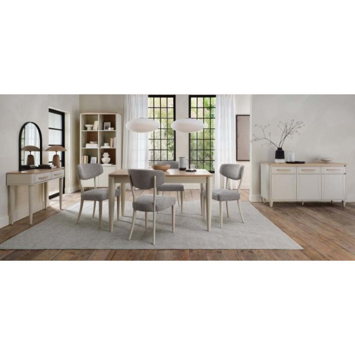 I’d call the Delta table a go-anywhere staple - its light oak top paired with soft grey legs suits modern Scandi, coastal schemes or even pared-back industrial spaces. The extendable feature means you can keep things neat for daily use and quickly upsize for extra guests without losing on style. To keep it looking fresh, centre a simple linen runner and add ceramic vases or coloured glass tumblers in muted tones. Woven placemats and a low, leafy arrangement will add texture without cluttering the extension mechanism, and pale dining chairs or light-wood benches will reinforce that airy, contemporary feel.