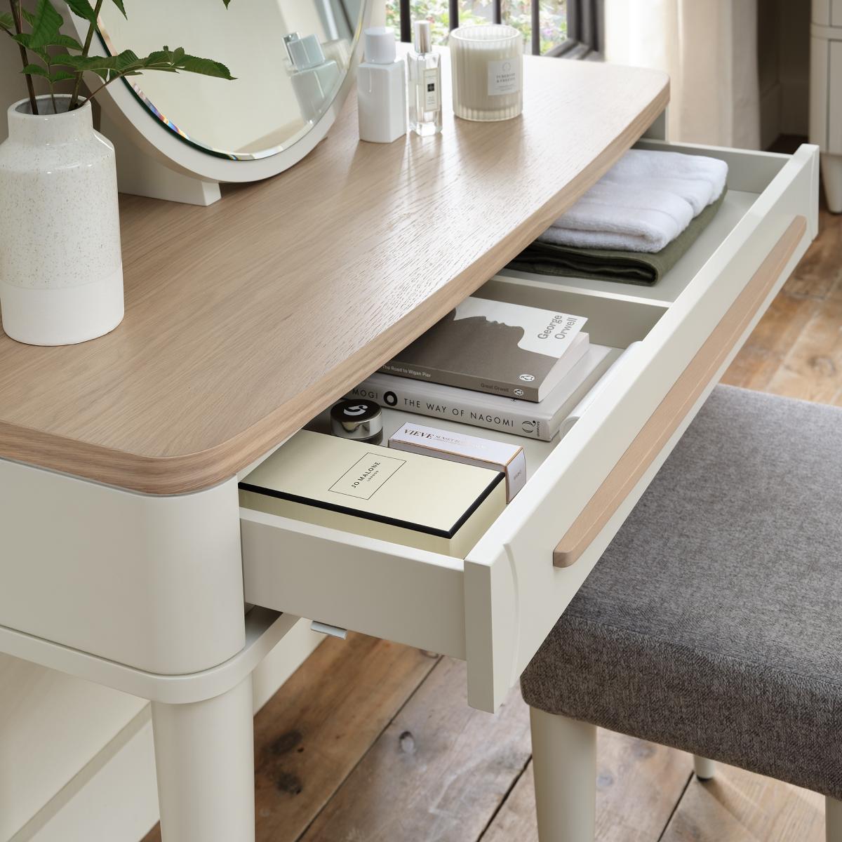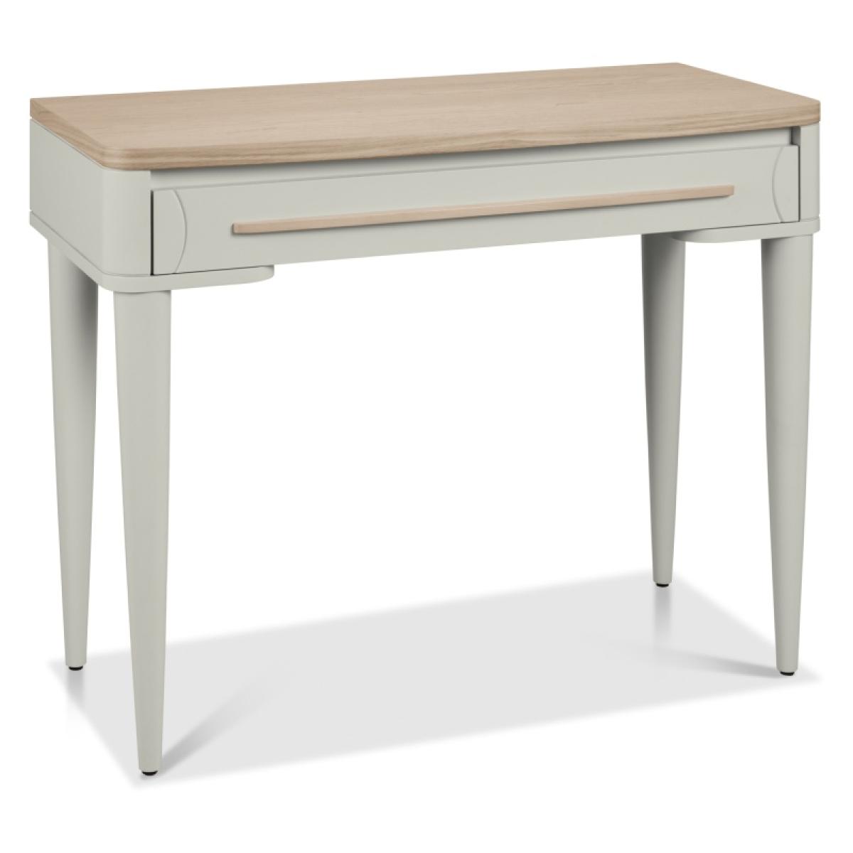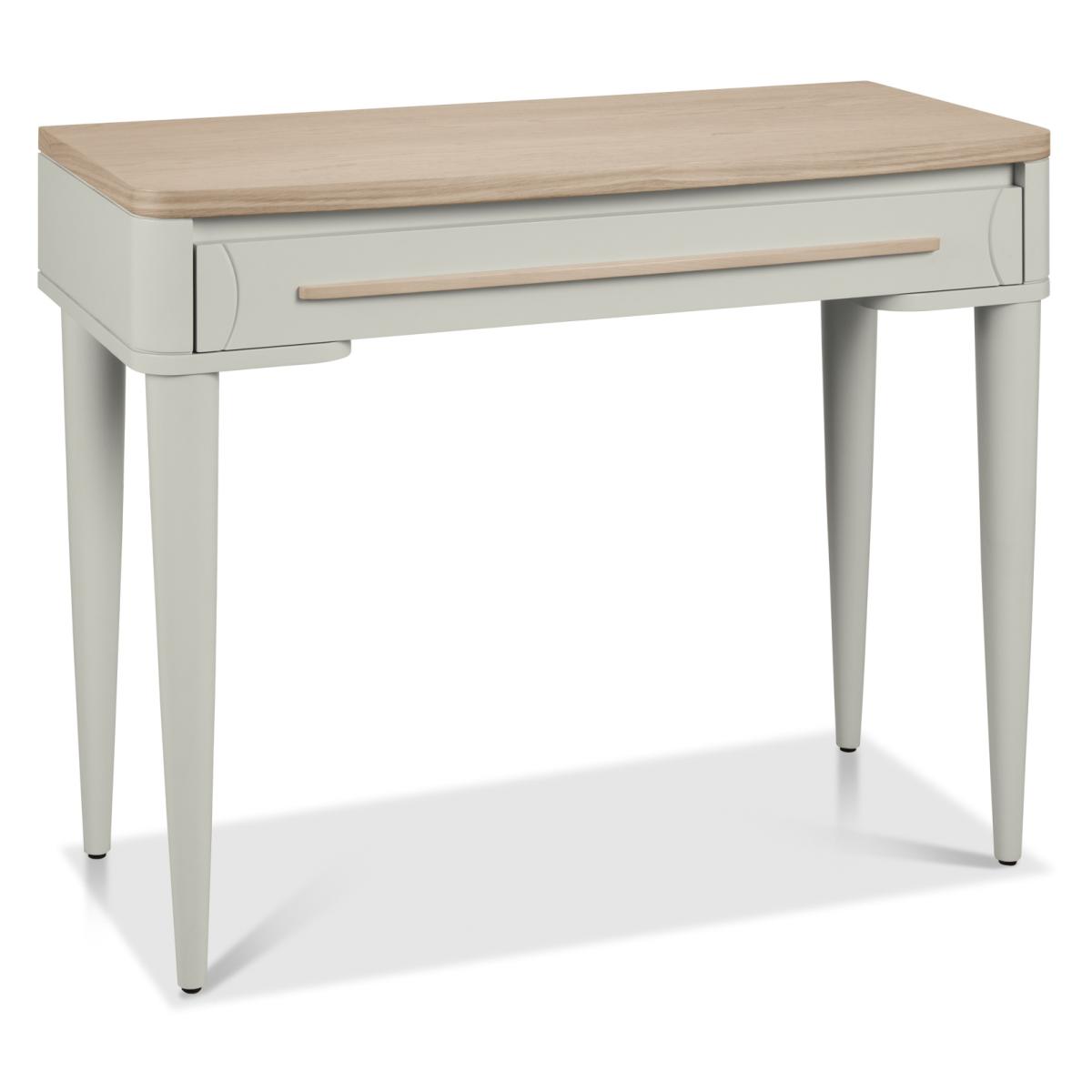 Enhance the style and functionality of your bedroom with this elegant Delta Scandi Oak & Soft Grey Dressing Table, designed to bring a refined touch to your space. Finished in a chic Scandi Oak and Soft Grey, it effortlessly complements a range of interior styles. Crafted from Beech Solid Wood, White Oak Veneer, and Composite Board, this dressing table offers both durability and timeless elegance. The single soft-close drawer ensures smooth, quiet operation, perfect for keeping your beauty essentials neatly tucked away. Features: Scandi Oak and Soft Grey for a modern, sophisticated look. Made with Beech Solid Wood, White Oak Veneer, and Composite Board for durability. One drawer with smooth, quiet operation for easy storage. Partial assembly required. 2-year manufacturer’s guarantee. Dimensions: 46cm (D) 100cm (W) 77cm (H) This dressing table is the perfect combination of style, practicality, and quality, making it a stunning addition to any bedroom. Please note All screens vary in colour reproduction and whilst every effort has been made to display the colour as accurately as possible it is for guidance only.