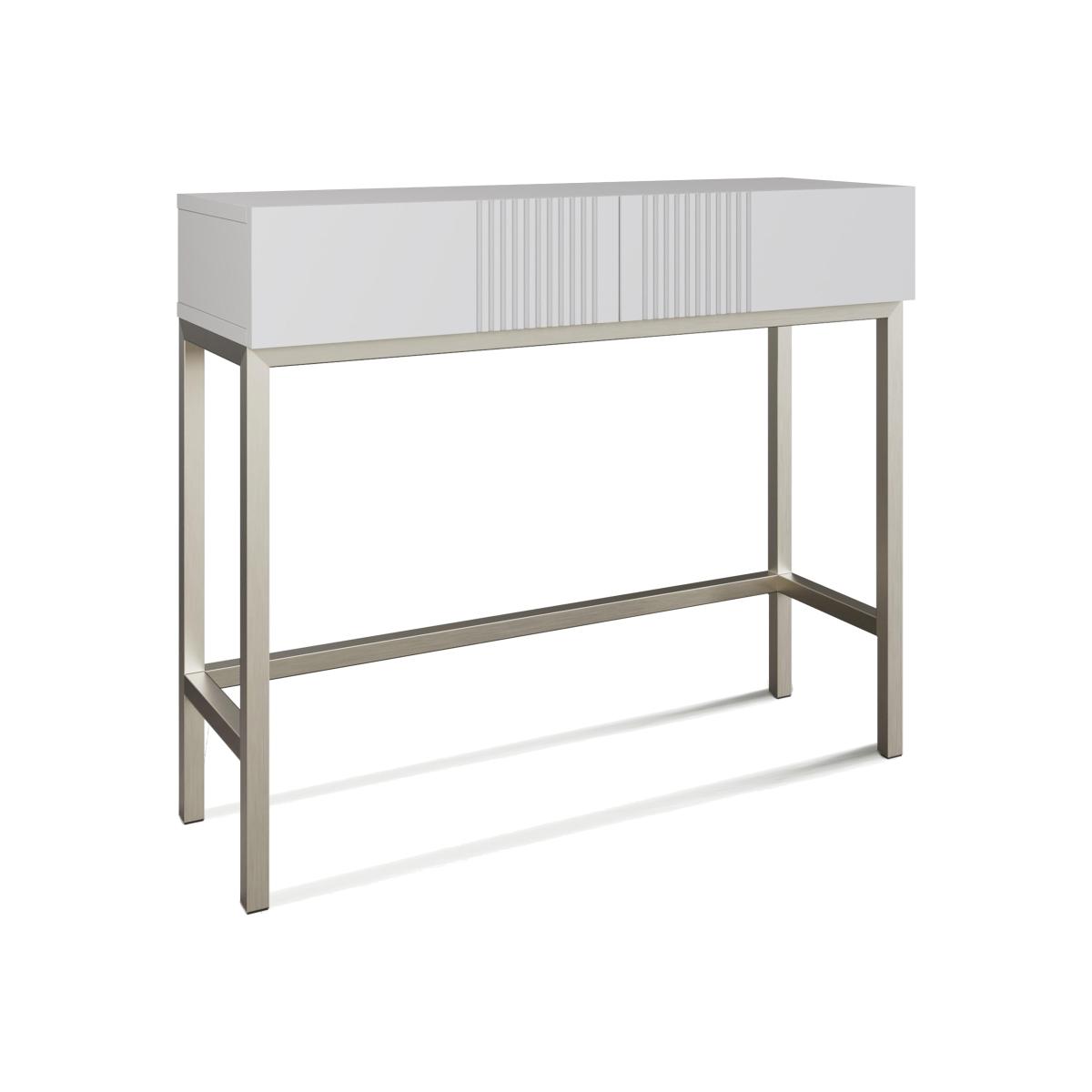 The furniture in our Delta range is beautiful – and this time it’s more than skin deep. A truly innovative range, Delta combines contemporary design with high-tech features that include built-in mood lighting operated via smart speaker or phone app, wireless phone charging, and Intelligent Eye media storage. Technology is seamlessly integrated into a design aesthetic that makes a quiet statement. Clean and linear, pieces have a painted satiny finish with subtle fluting detail and brushed nickel legs. All that plus spacious well-designed storage. The Delta range is only available online at Furniture Village. This multi-functional vanity table doubles as a console table or even a small-space desk. The built-in mood lighting is a lovely touch, and you’ll also appreciate the hidden phone charging point. Why you'll love it Statement style plus innovative technology – that’s this vanity table. The ultimate in contemporary furniture design. Built-in mood uplighting controlled via smart speaker or phone app. Discrete wireless phone charging point. Painted top and front with smooth satin finish. Fluted drawer front and brushed nickel base. In a choice of stylish colours. Seamless interior finish in the same colour. Easy click-together self-assembly. A Furniture Village online exclusive. This vanity table is part of the Delta range. What you need to know 1 drawer. The finish may show small surface scratches, a result of the finishing process. Do not place in direct sunlight. Do not use abrasive cleaning products. Wipe clean with a damp cloth, and dry with a soft duster. We recommend using coasters and placemats.