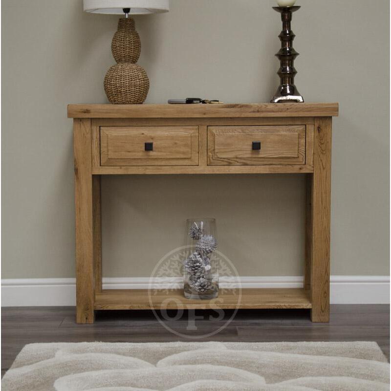 The Deluxe range is a collection that is defined by its quality and practicality. Crafted from finest hand selected solid oak timbers and finished with a hard wearing low sheen lacquer which highlights the beautiful, natural grain and protects the surface from scratches and bumps. Standout features of the Deluxe pieces include fully dove tailed joints, extra thick tops, gorgeous groove detailing on the panelling and black square metal handles. The gorgeous table has two drawers for extra storage and help you keep your hall looking as neat and tidy. With the increased use of open plan living and the move to multi-functional rooms the deluxe range features pieces for the living room, dining room, hall and office. All pieces come fully assembled and are delivered into a room of your choice. Matching items from the range can be found at the bottom of this page.