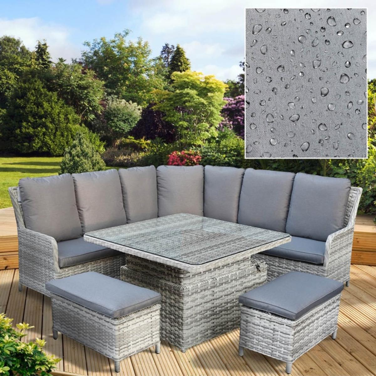 Introducing our Deluxe Large Garden Corner Set with Adjustable Table from the brand new Verona Deluxe range. Elevate your outdoor space with this stylish and luxurious seating ensemble. The set features water repellent cushions treated with a special surface coating, ensuring they remain resistant to moisture and are easy to maintain. With its adjustable table, you can customize the layout to suit your needs, whether dining or lounging. Perfect for outdoor entertaining or simply relaxing in the sunshine, this corner set enhances your outdoor space with comfort, durability, and style, making it a perfect addition to any garden or patio setting.