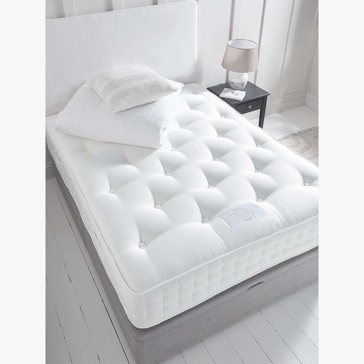 Few things in life are more important than a good night’s sleep and our luxurious made to order mattresses are here to provide comfort and support all night long. Mohair, pashmina and bamboo fibres layered over 3000 pocket springs, with a hand stitched finish and second generation zero gravity technology bring exceptional comfort to this Deluxe mattress. Traditionally hand crafted in the United Kingdom this mattress offers soft to medium support and is available in four sizes.