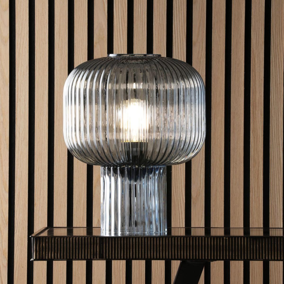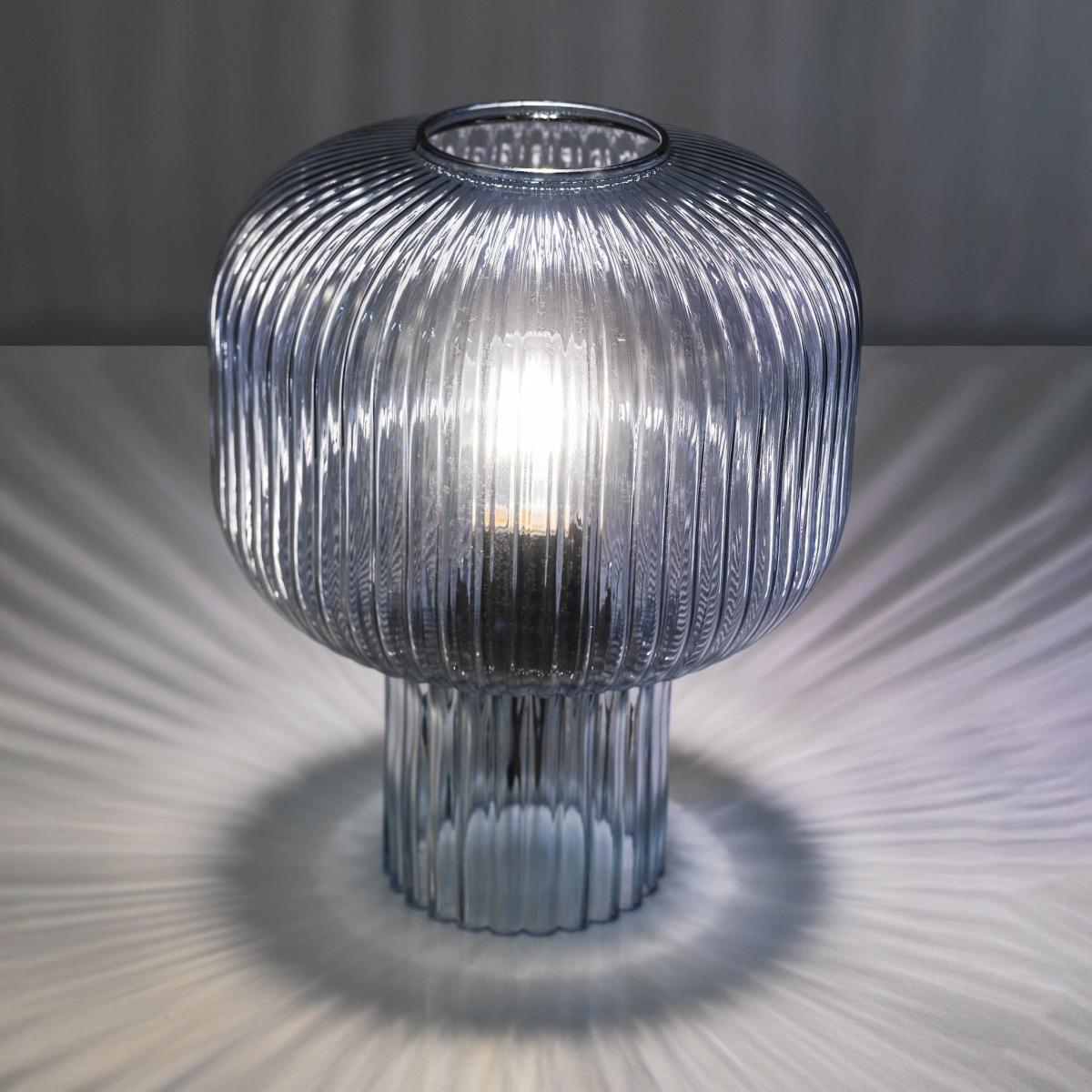 Demarius 1-light table lamp, made from blue ribbed glass. The Demarius table lamp brings a unique pop of colour to your space with its stunning blue ribbed glass construction. The textured design of the glass creates a beautiful interplay of light and shadow, casting a soft, inviting glow that enhances the ambiance of any room. Perfect for adding a touch of elegance to side tables, desks or nightstands, this lamp offers both functional lighting and a stylish decor accent. The eye-catching blue hue and timeless design make the Demarius table lamp a versatile piece that complements a variety of interior styles, from mid-century modern to contemporary. Demarius 1-light table lamp, made from blue ribbed glass. The Demarius table lamp brings a unique pop of colour to your space with its stunning blue ribbed glass construction. The textured design of the glass creates a beautiful interplay of light and shadow, casting a soft, inviting glow that enhances the ambiance of any room. Perfect for adding a touch of elegance to side tables, desks or nightstands, this lamp offers both functional lighting and a stylish decor accent. The eye-catching blue hue and timeless design make the Demarius table lamp a versatile piece that complements a variety of interior styles, from mid-century modern to contemporary.