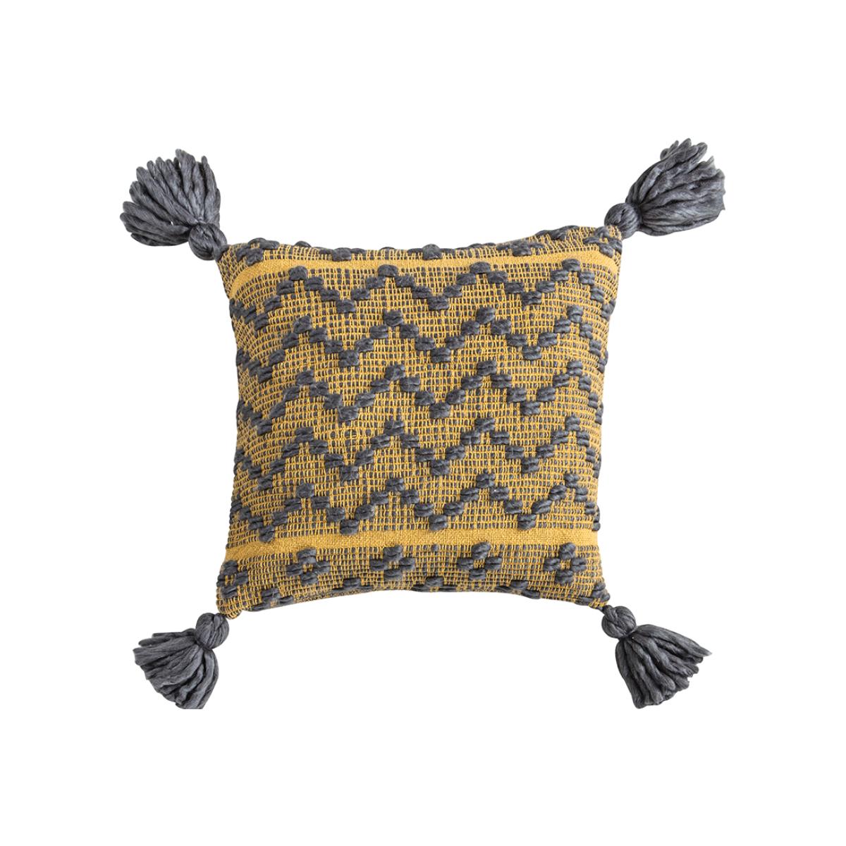 Demetrius Embroidered Tassel Cushion in Grey and Yellow
