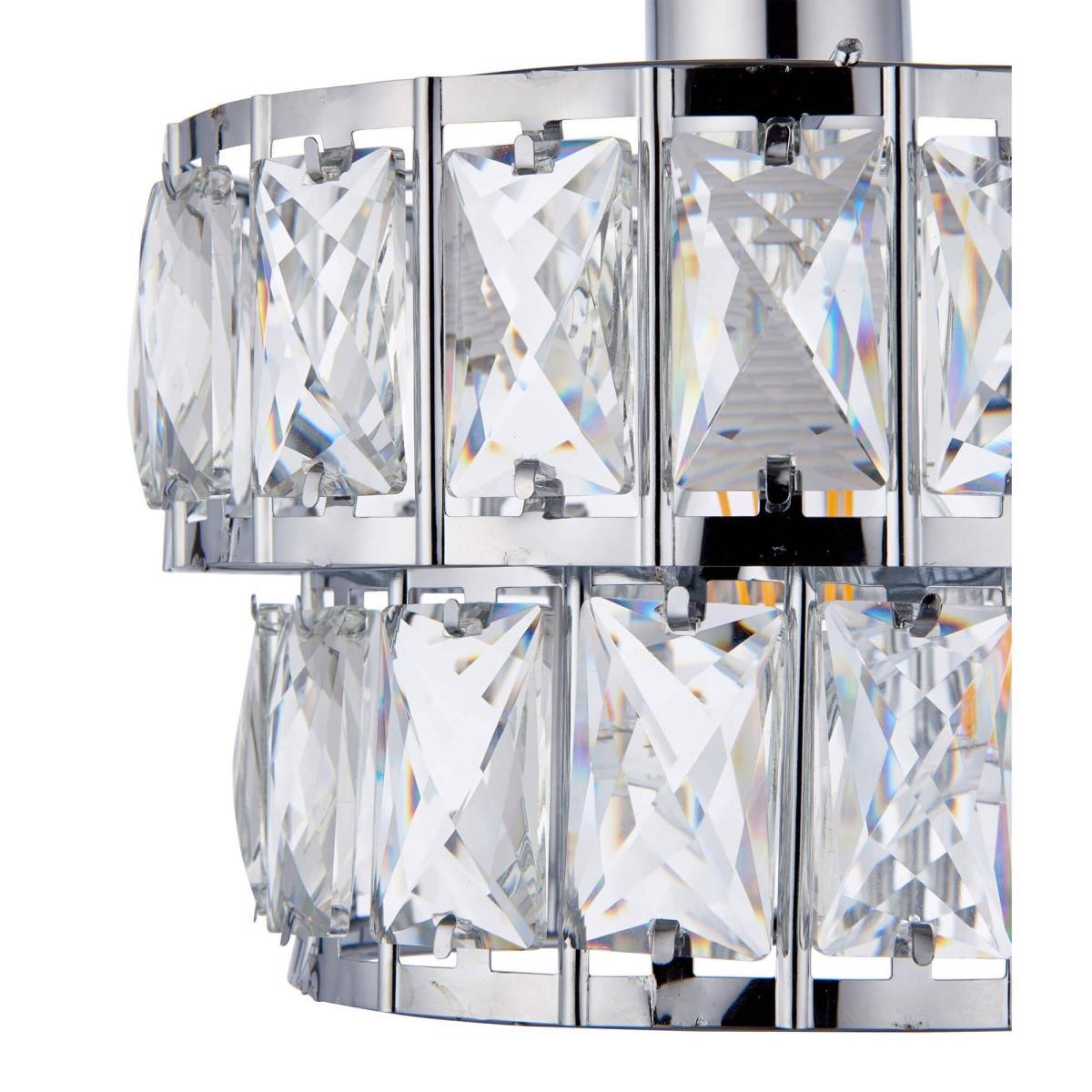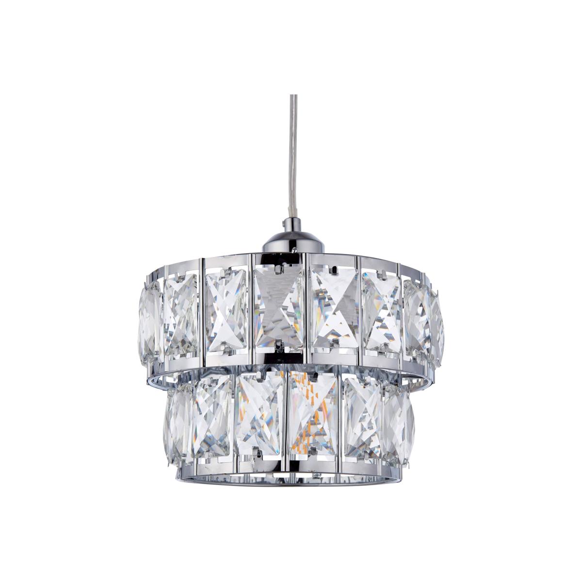 Glamorous shade boasting a polished chrome finish. A beautiful addition to your home, this pendant light shade is part of the Dempster range from Pagazzi Lighting. Boasting a polished chrome finish, this elegant shade is a two-tiered piece, featuring clear crystal glass detailing. When lit, a sparkly diffusion of light is cast. It is ideal for updating existing ceiling lights in lounges, hallways and bedrooms.