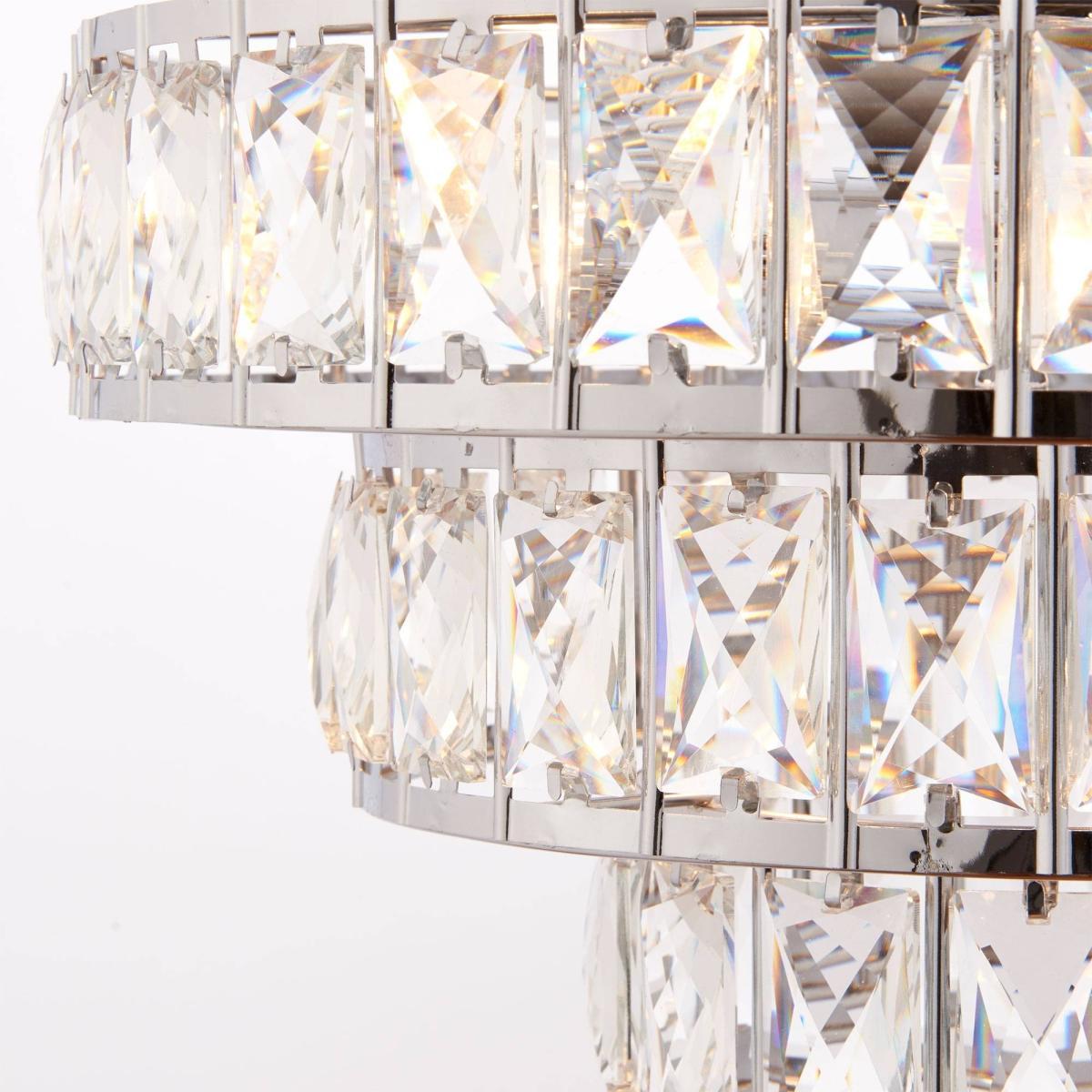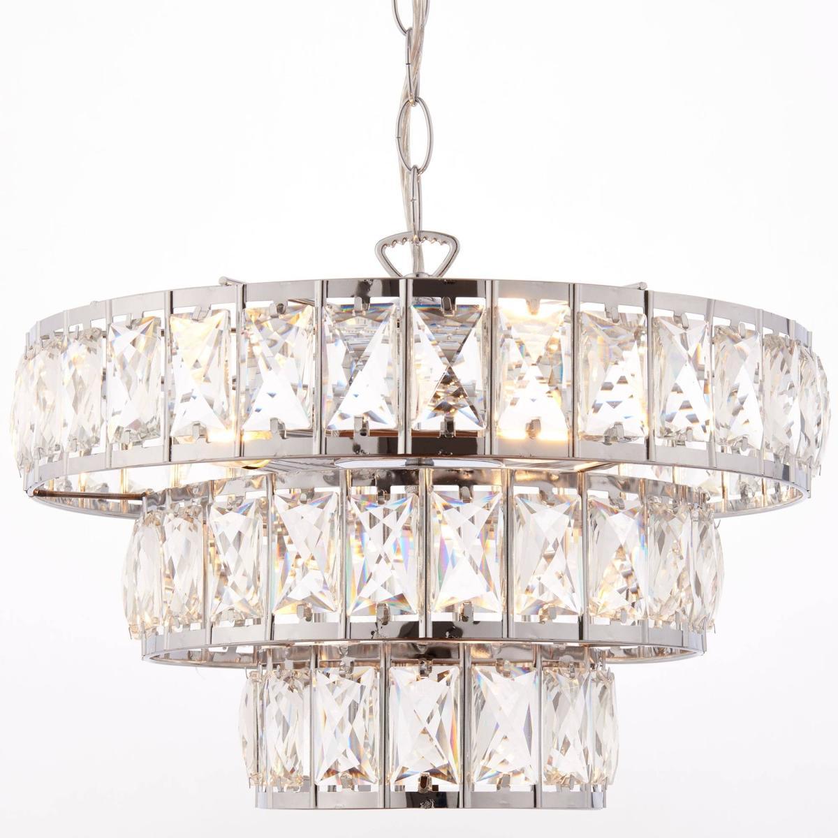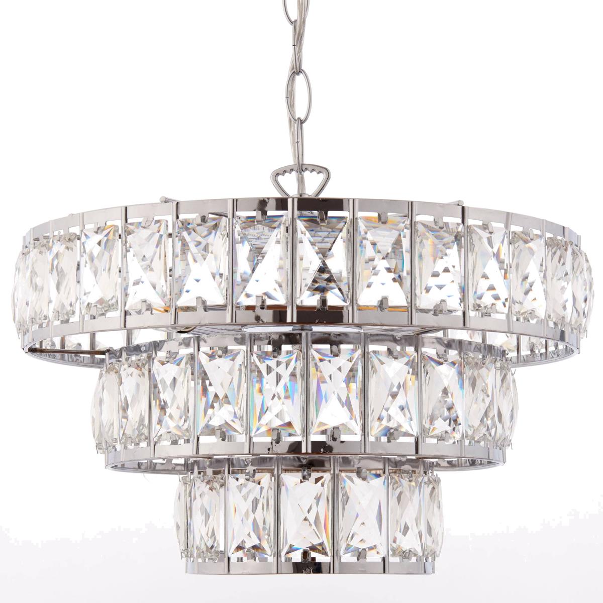 Glamorous pendant light boasting a polished chrome finish. A beautiful addition to your home, this pendant ceiling light is part of the Dempster range from Pagazzi Lighting. Boasting a polished chrome finish, this elegant fitting is a three-tiered piece, featuring clear crystal glass detailing. When lit, a sparkly diffusion of light is cast. Height adjustable at the time of installation, it is ideal for use in lounges, hallways and bedrooms.