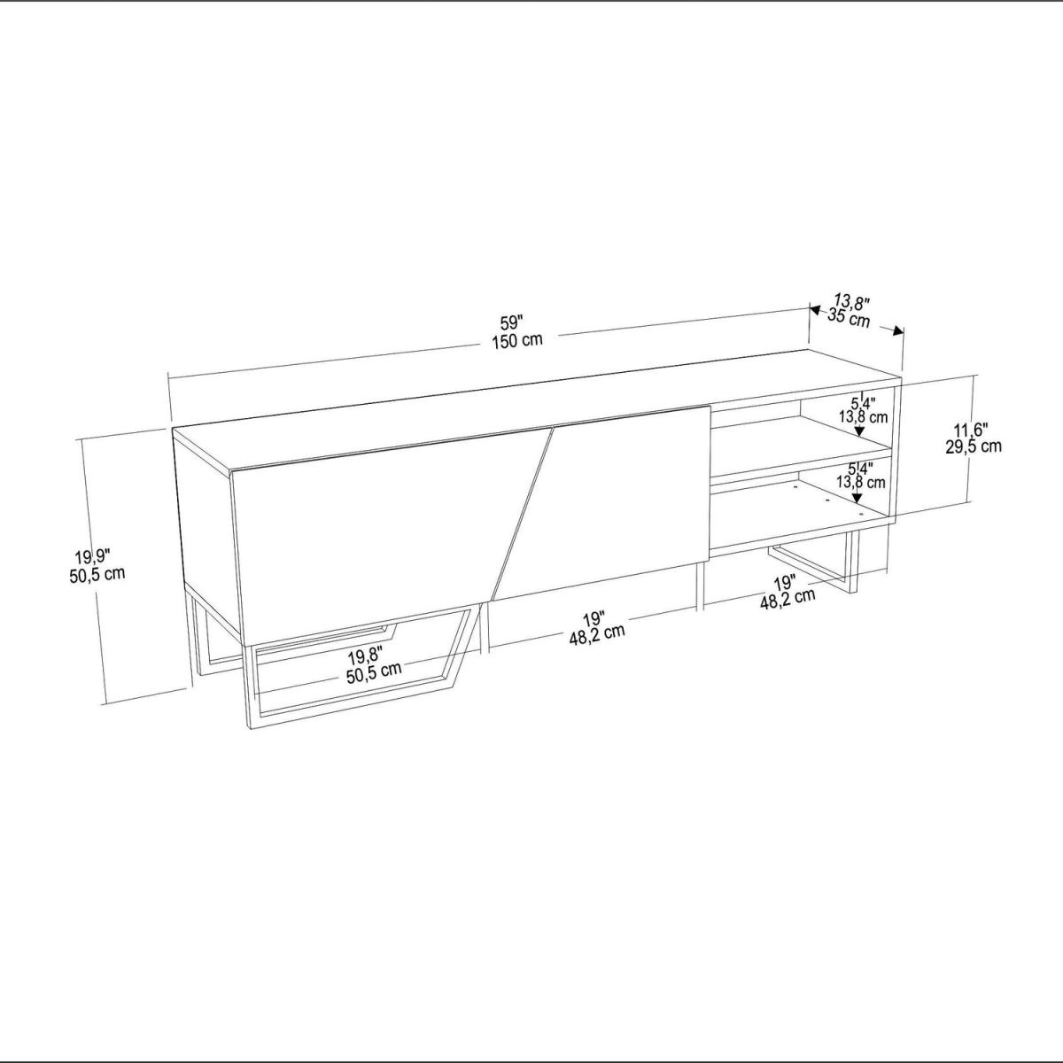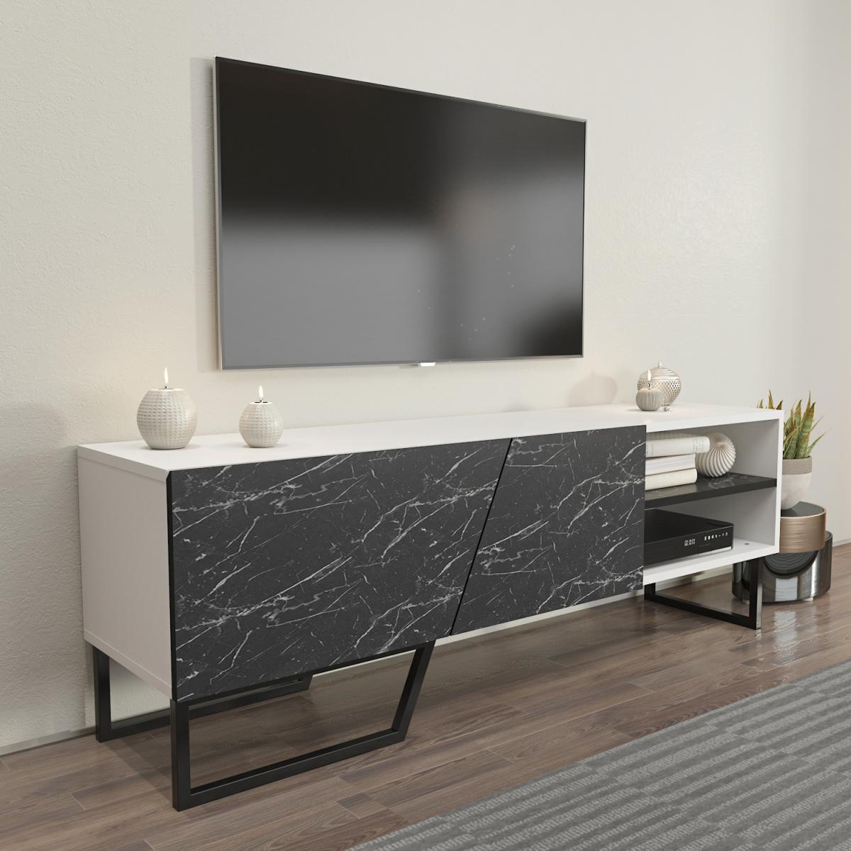 Denasse 150 cm wide TV stand offer quality and elegance together. While its assymetrical design adds a contemporary look to your room, it provides storage with its cabinets and shelves. Thanks to its modern design, you can store all your belongings easily. It is made of 18 mm thick melamine coated particle board. Legs are iron metal. Wood edges are banded with PVC edge banding tape. The frame/legs are coated with impact and scratch-resistant static paint. Overall, it is manufactured using eco-friendly and health-friendly TSE certified materials. The product will be delivered to the customer in the original package as disassembled. It is designed to be assembled by the customer using a power drill and screwdriver. Assembly instruction and installation hardware are included in the package. For fast and error-free installation, product parts are numbered with stickers in accordance with the assembly guide.