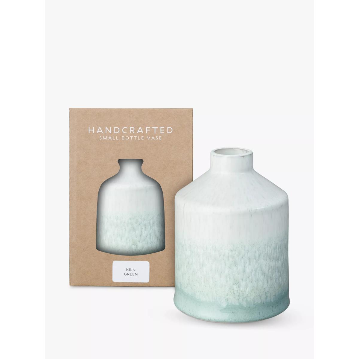 Denby's Kiln range is a true celebration of British craftsmanship. Soft, tranquil and serene, it's designed to be subtle and embrace the link with nature and biophilic design. Each piece is finished by hand with a reactive ombre glaze which makes each item unique. The shape of this small bottle vase is inspired by the early Salt glaze bottles produced by Denby in the late 19th century. Its miniature form makes it perfect for displaying a single stem. It comes presented in a contemporary Denby gift box so whether you're treating yourself or someone else it's something special. Each piece of Denby stoneware is handcrafted using pottery techniques passed down through generations and can pass through as many as 20 pairs of hands during the making process. Every item of pottery is expertly glazed by skilled craftsmen and the distinctive glazes are renowned for their practicality and durability.