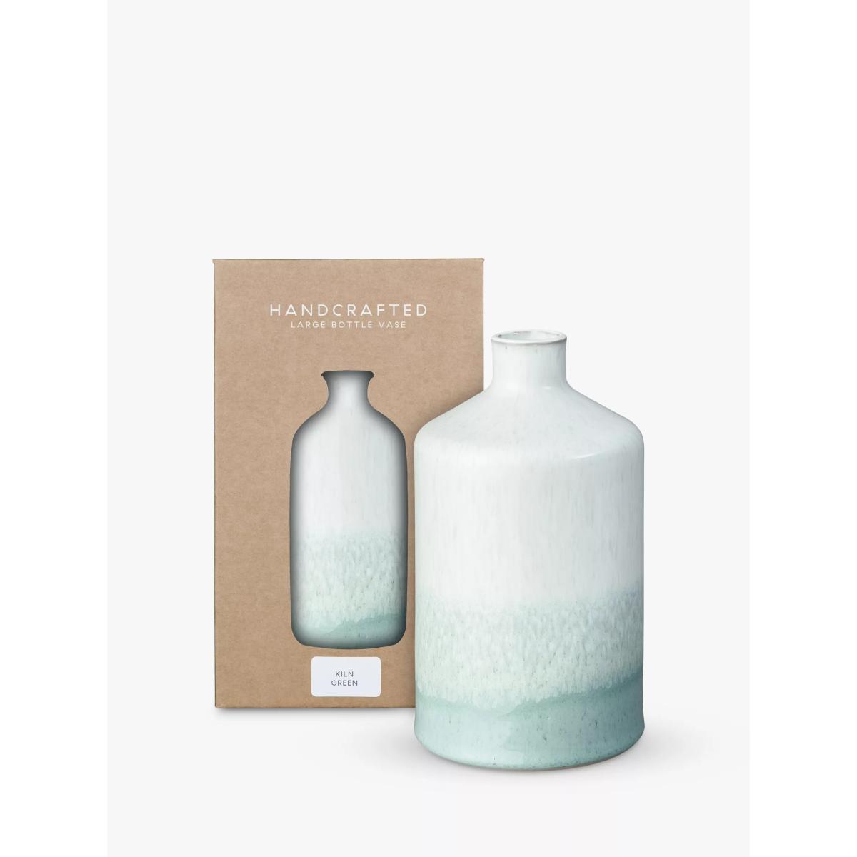 Denby's Kiln range is a true celebration of British craftsmanship. Soft, tranquil and serene, it's designed to be subtle and embrace the link with nature and biophilic design. Each piece is finished by hand with a reactive ombre glaze which makes each item unique. This large bottle vase makes a statement and is just as eye-catching whether it's displayed alone as a decorative item or with your favourite arrangement of foliage or flowers. It comes presented in a contemporary Denby gift box. Each piece of Denby stoneware is handcrafted using pottery techniques passed down through generations and can pass through as many as 20 pairs of hands during the making process. Every item of pottery is expertly glazed by skilled craftsmen and the distinctive glazes are renowned for their practicality and durability.