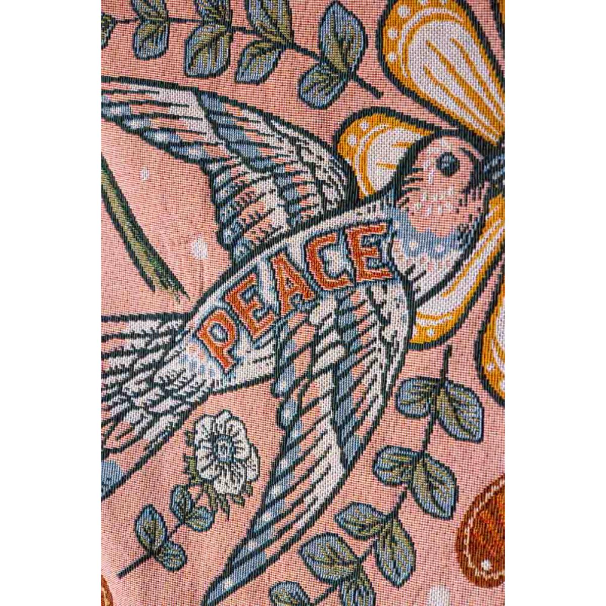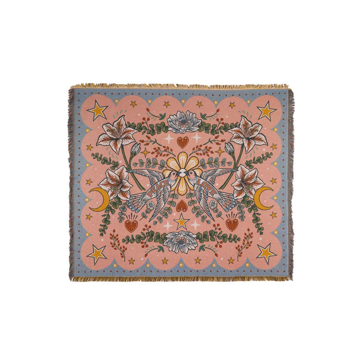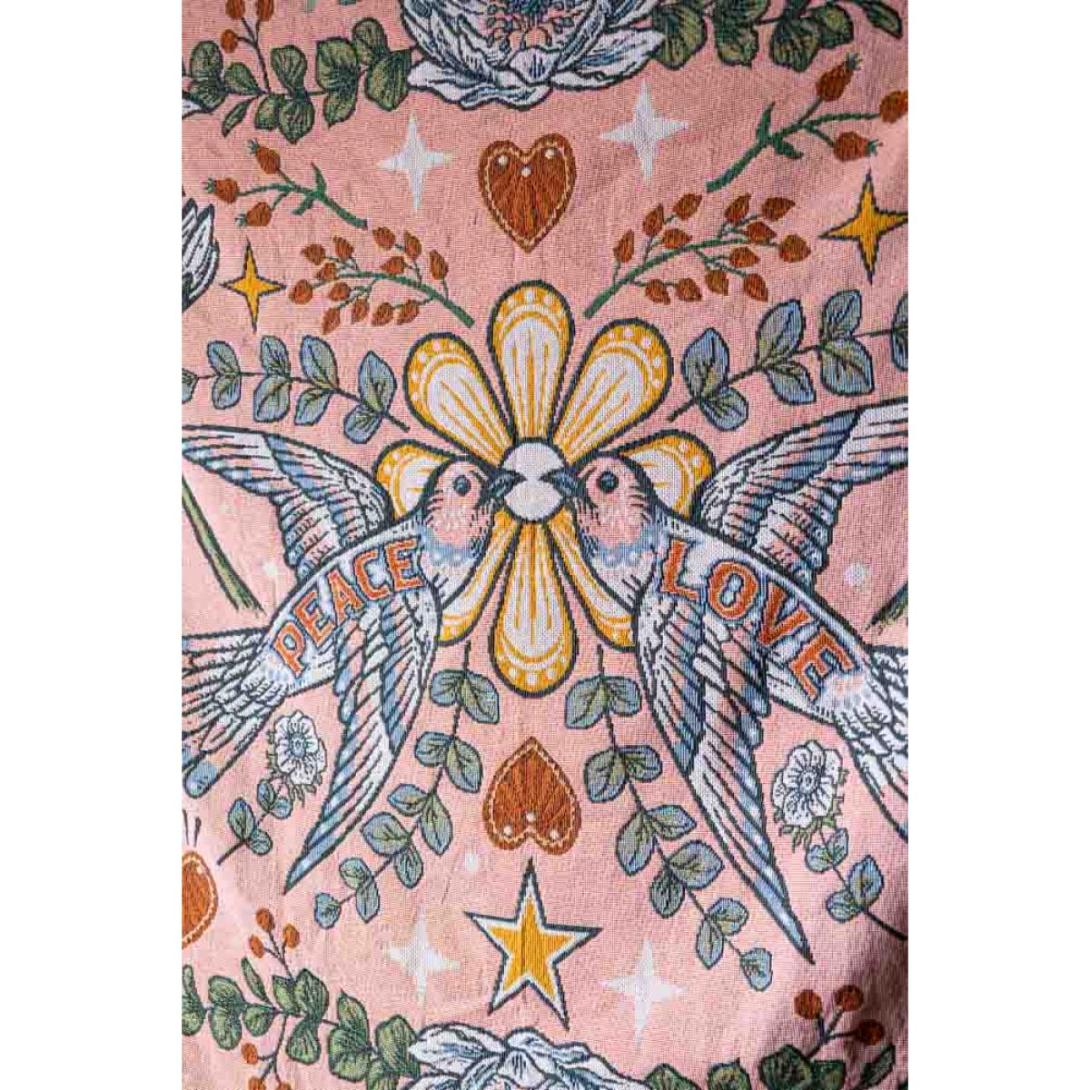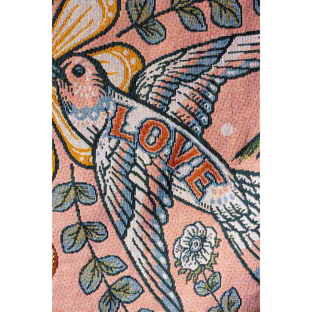 We don’t know whether to gaze at this in adoration or wrap ourselves up in its vast swathes of gorgeousness. Embrace warmth and style with our beautifully-crafted, fringed woven throw, which features delightful blue lovebirds in the centre, alongside floral, celestial and heart motifs. A feast for the eyes in pinks, blues, crimson and yellow hues, this exquisite piece not only offers comfort but also serves as a stunning accent for your living space. Each throw is intricately designed, with the lovebirds symbolising peace and harmony. The soft fabric invites you to snuggle up with those you love best, and transforms your living room or bedroom into a tranquil retreat. Made from soft, high-quality cotton for maximum comfort, this is versatile enough to complement both modern and traditional decor, and is a unique, quirky piece that you’ll treasure forever. - Denim & Bone Blue Lovebirds Woven Cotton Throw - Material: 100% Cotton - Measures: W190cm x L160cm