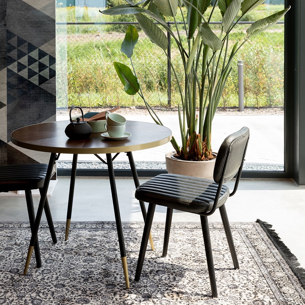 Perfect in the kitchen or the dining room, the Denise Round Dining Table makes the ideal centerpiece. In a beautiful walnut coloured finish and gold edging detail, this beauty of a table will look stunning wherever it is placed. So gather the girls for a night of cocktails or enjoy some quality time with the family, the retro styling of Denise will be a welcome addition. With other pieces available in the Denise range, why not create a wonderful coordinating look throughout your home.