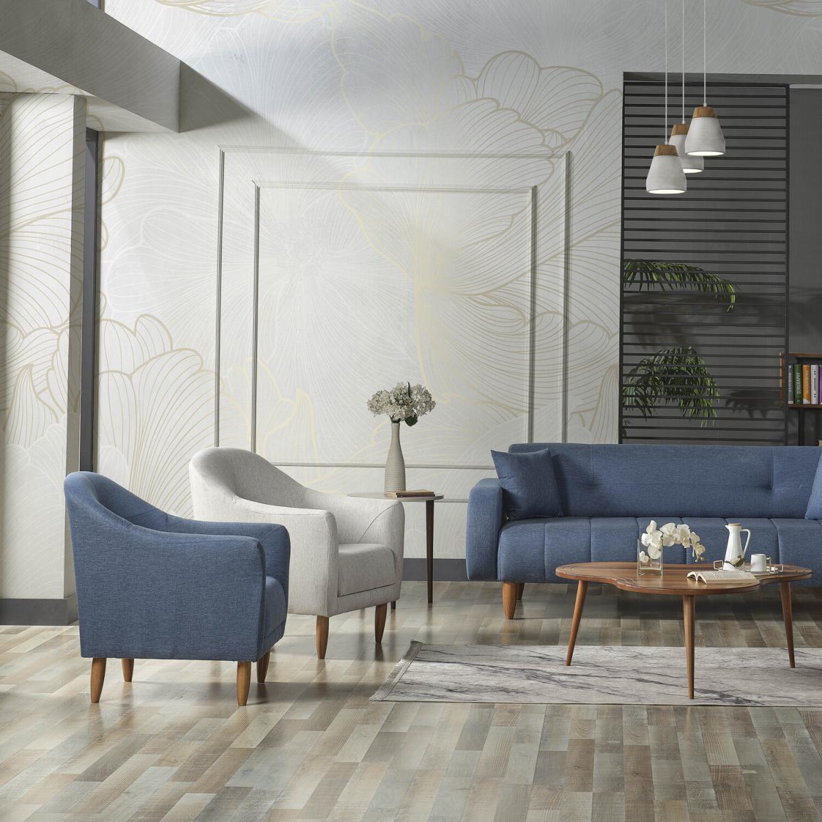 This elegant and luxurious armchair is a delightful addition to any room in the house. This could be your new living room spot for relaxation or your brand-new reading chair. The wonderful versatility of this piece of furniture means it can be used almost anywhere or everywhere. It is dripping in rural charm and sophistication, perfect for a modern apartment or a stately home. Unbeatable Comfort and Support Deniz Loft armchair is perfect for relaxing and unwinding after a long day at work. It is the ideal solution if you are looking for comfort, style and visual appeal. The chair is completely upholstered in a beautiful dark beige or dark blue that adds to this sense of comfort and warmth. The colour embraces everything aside from the light-coloured, wooden legs that support the framework.