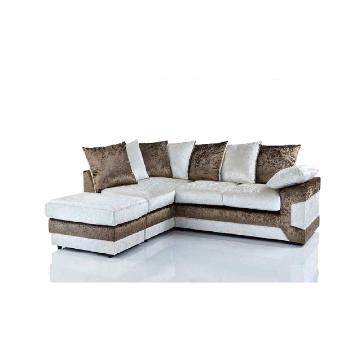 The Dennata Corner Sofa Collection is a beautifully designed fabric on a crush velvet style. Made to suit any modern home. The Dennata Sofa offers a high level of comfort with its generously filled foam and fiber cushions and seats. Built on a solid wooden frame for support and expert hand-picked materials and filling for durability while ensuring comfort is not sacrificed. Finished in crush velvet fabric material with matching trims that bring out its style and modern looks that are sure to make your living stand out.