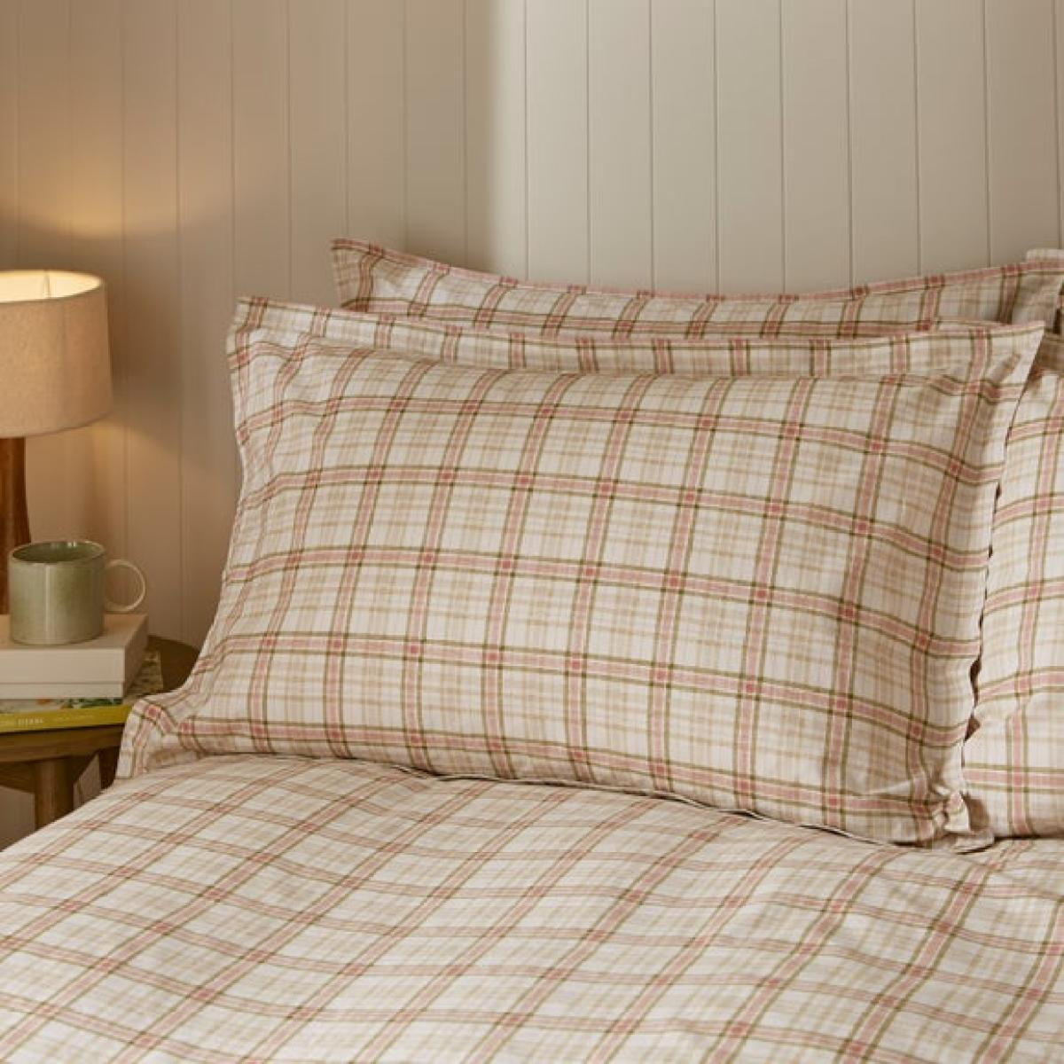 * Oxford style * Checked design * 100% cotton * Machine washable Timeless and inviting, the Denton Check Oxford Pillowcase is made from 100% cotton and printed with a classic check pattern. Naturally breathable and soft, it’s ideal for year-round comfort. Pair it with coordinating bedding pieces to create a cosy, tailored look in your space.