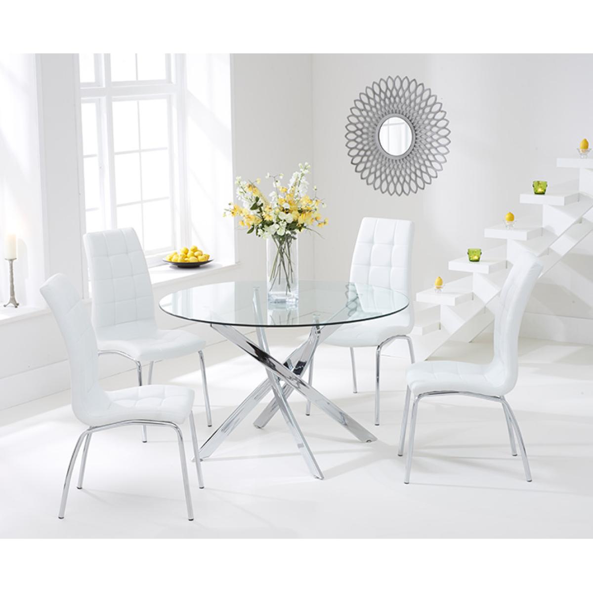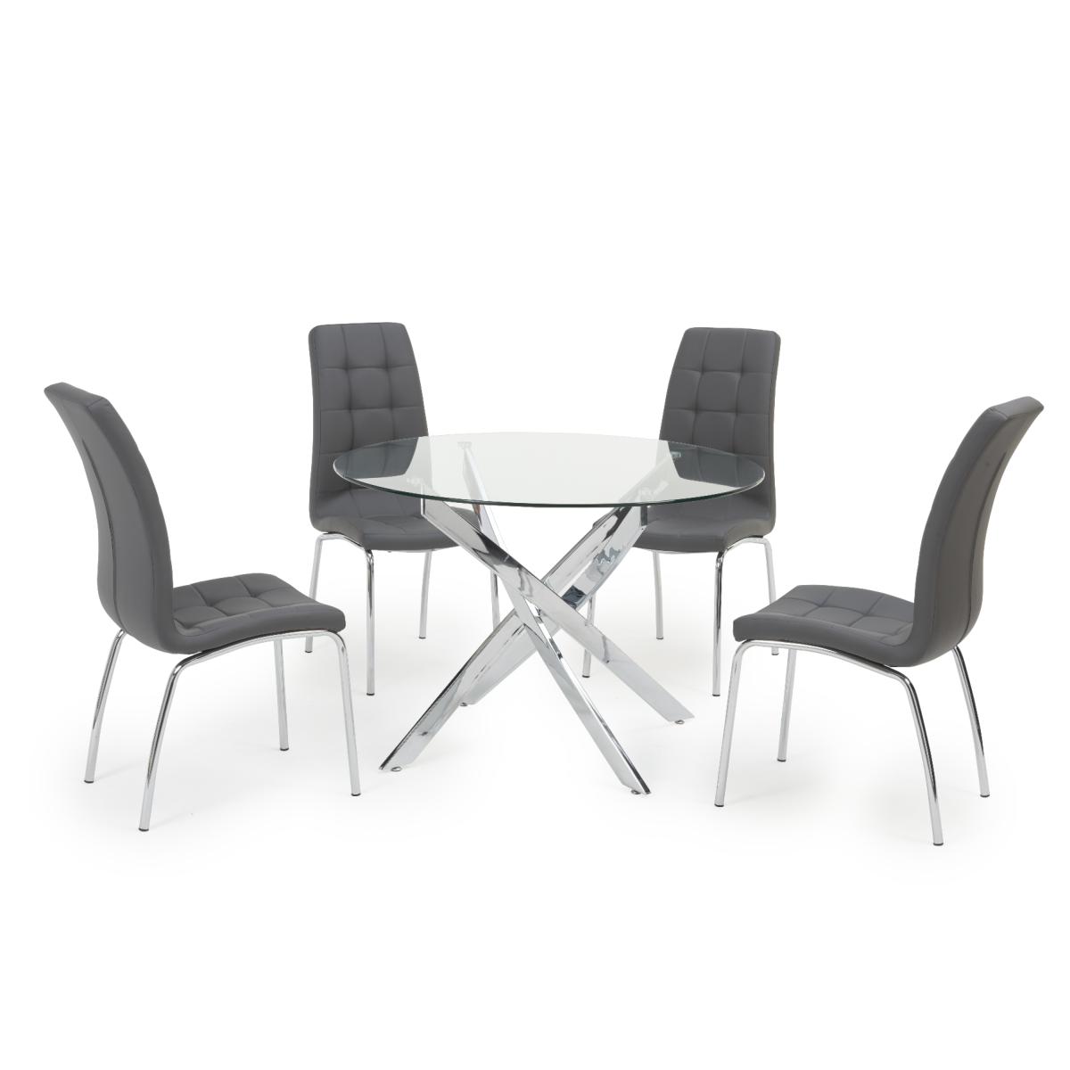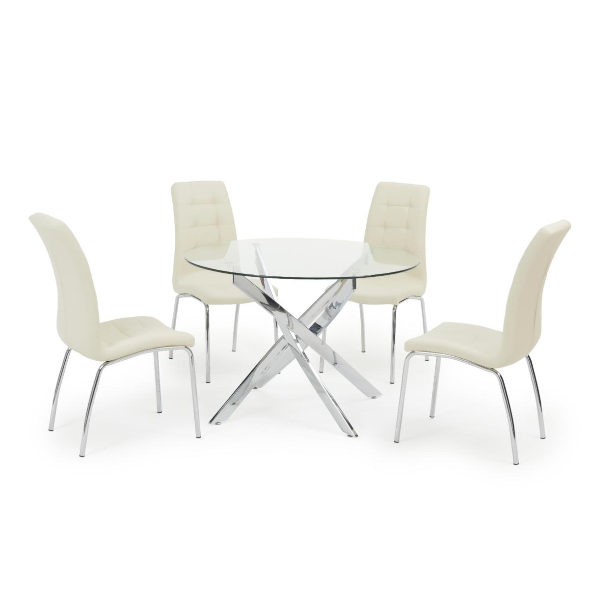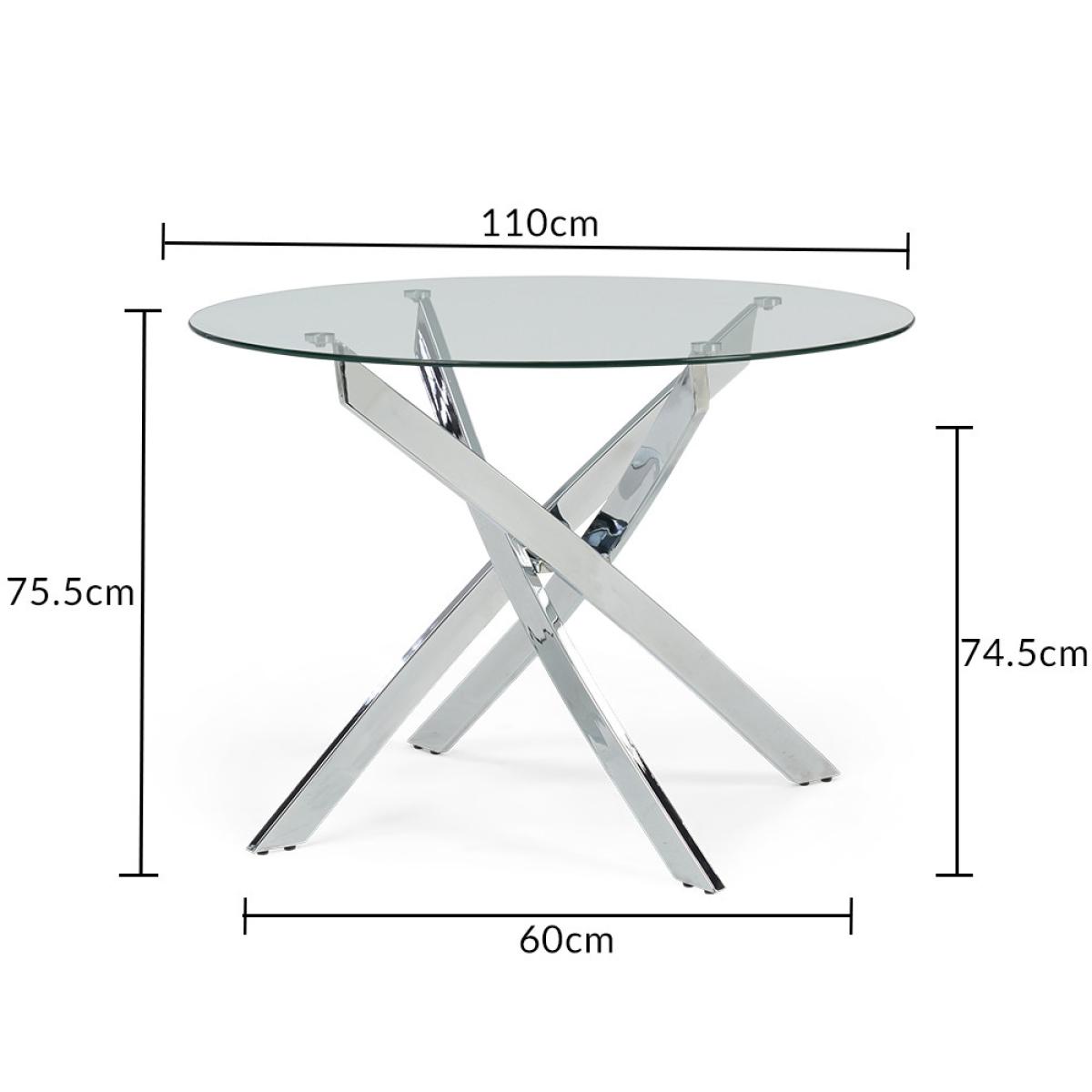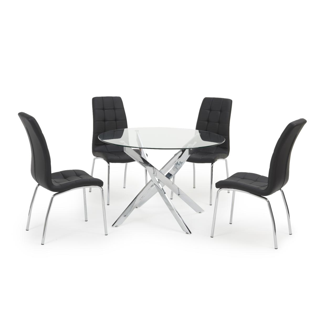 Denver 110cm Glass Dining Table with Chairs. Made of high quality tempered glass and metal that is durable, stable and solid.