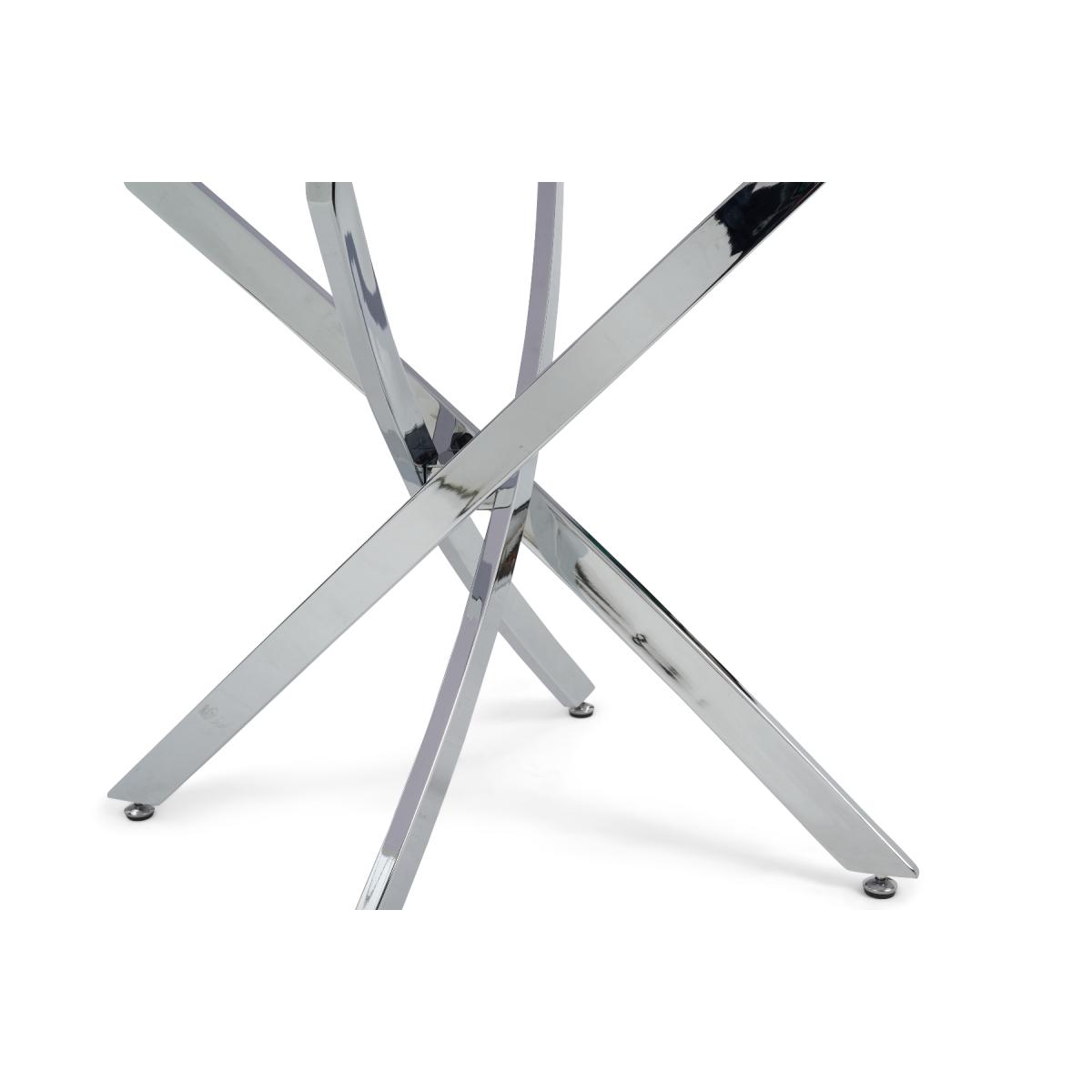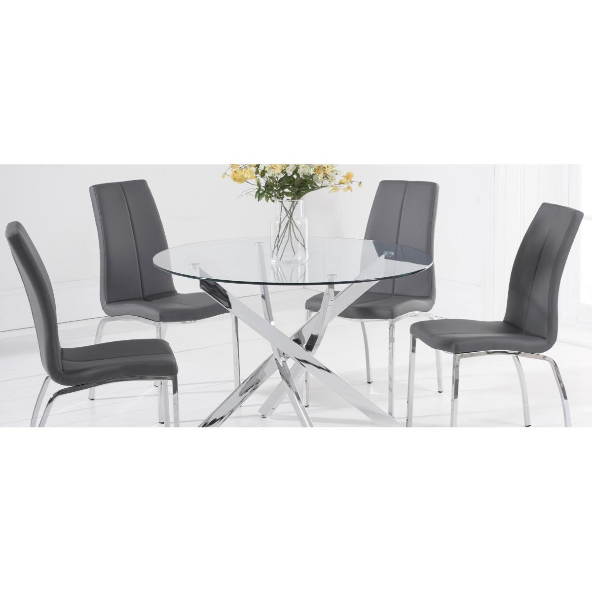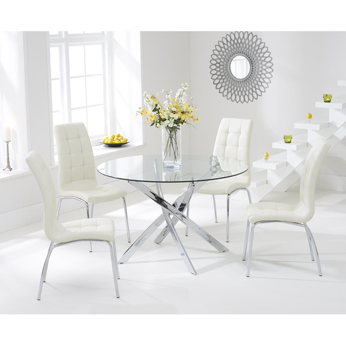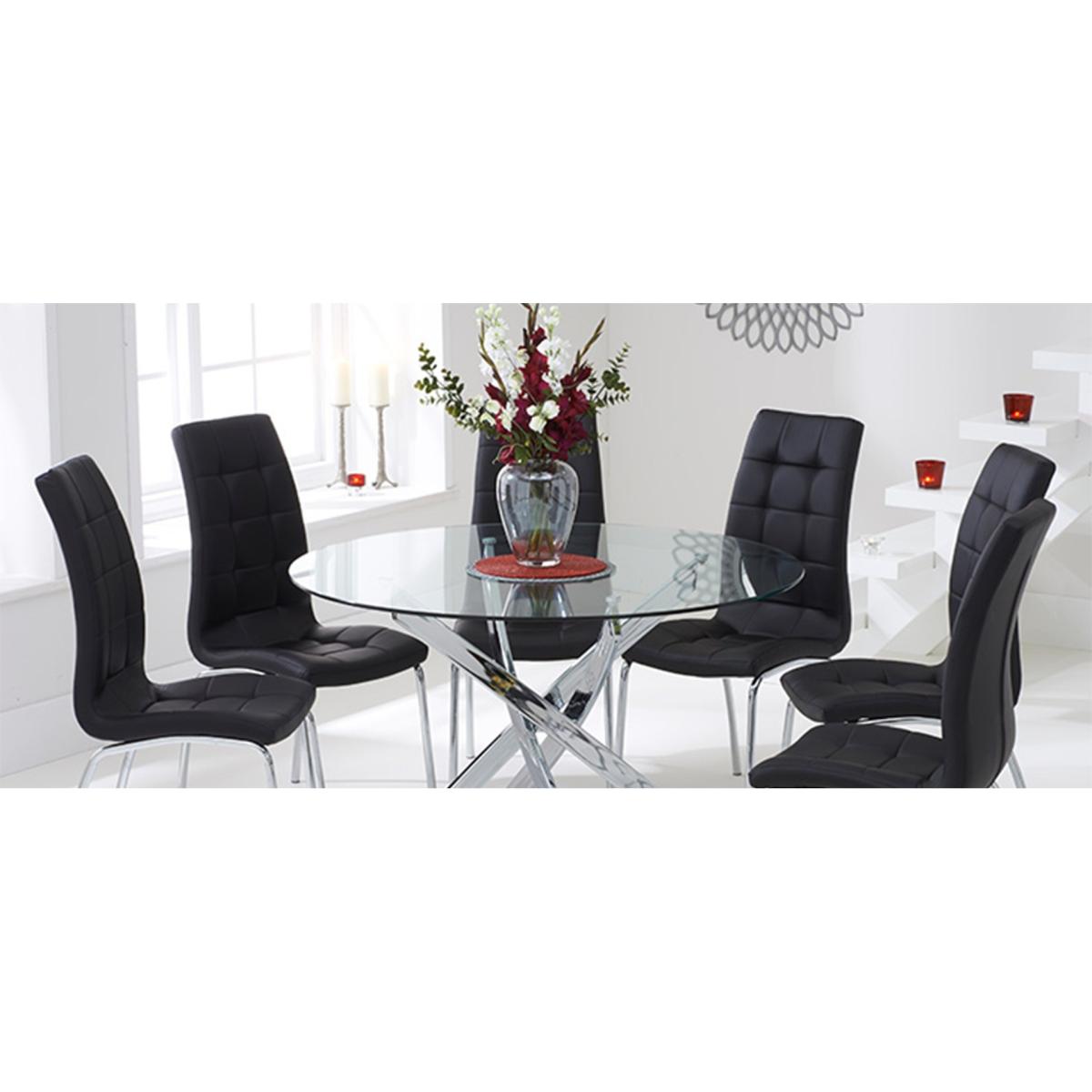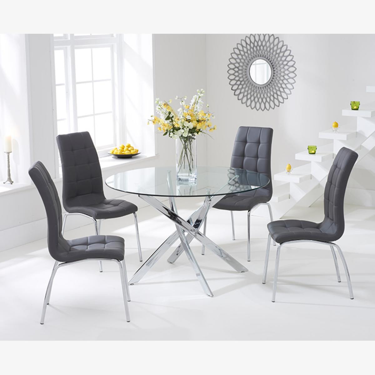 Denver 110cm Glass Dining Table with Chairs. Made of high quality tempered glass and metal that is durable, stable and solid.