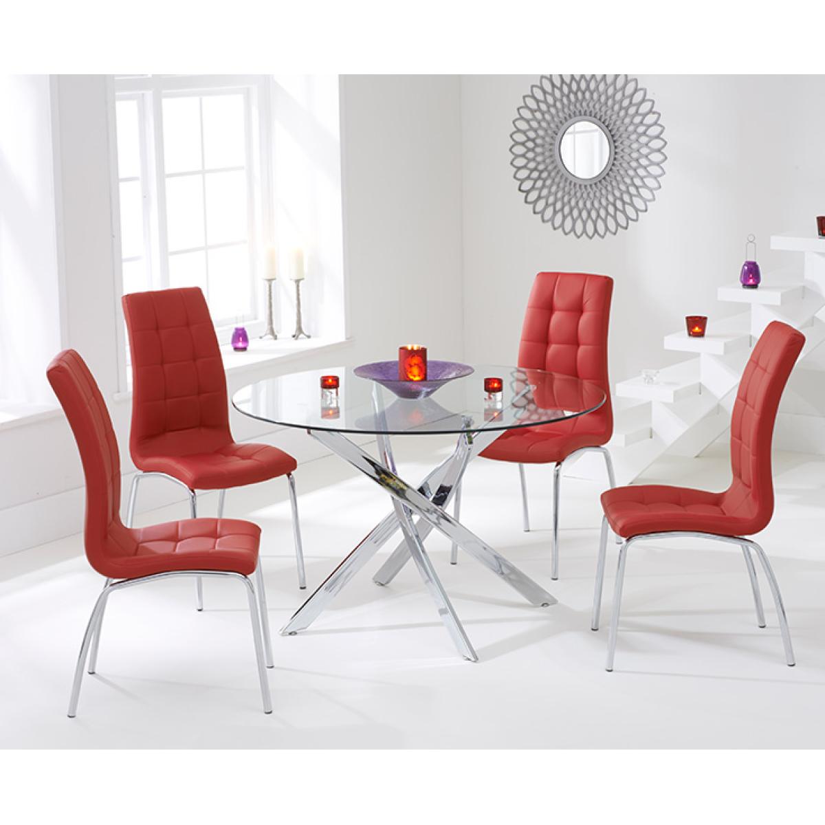 Denver 110cm Glass Dining Table with 4 Red Enzo Chairs