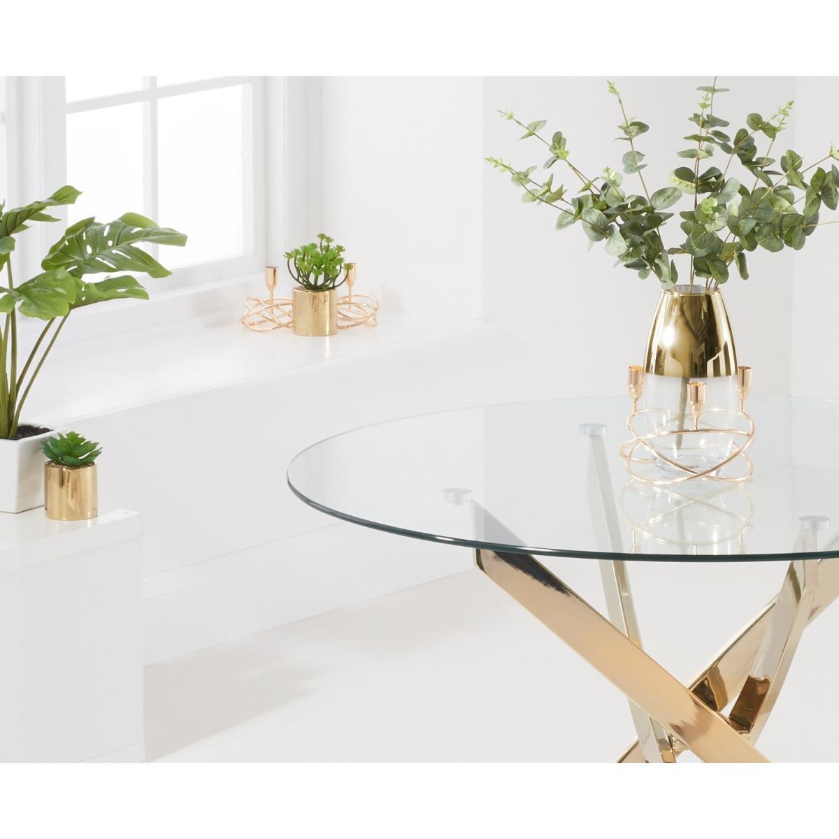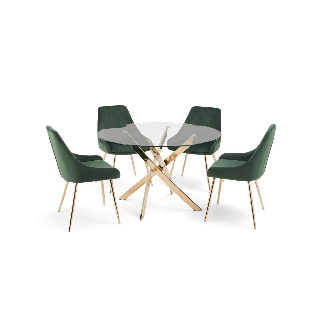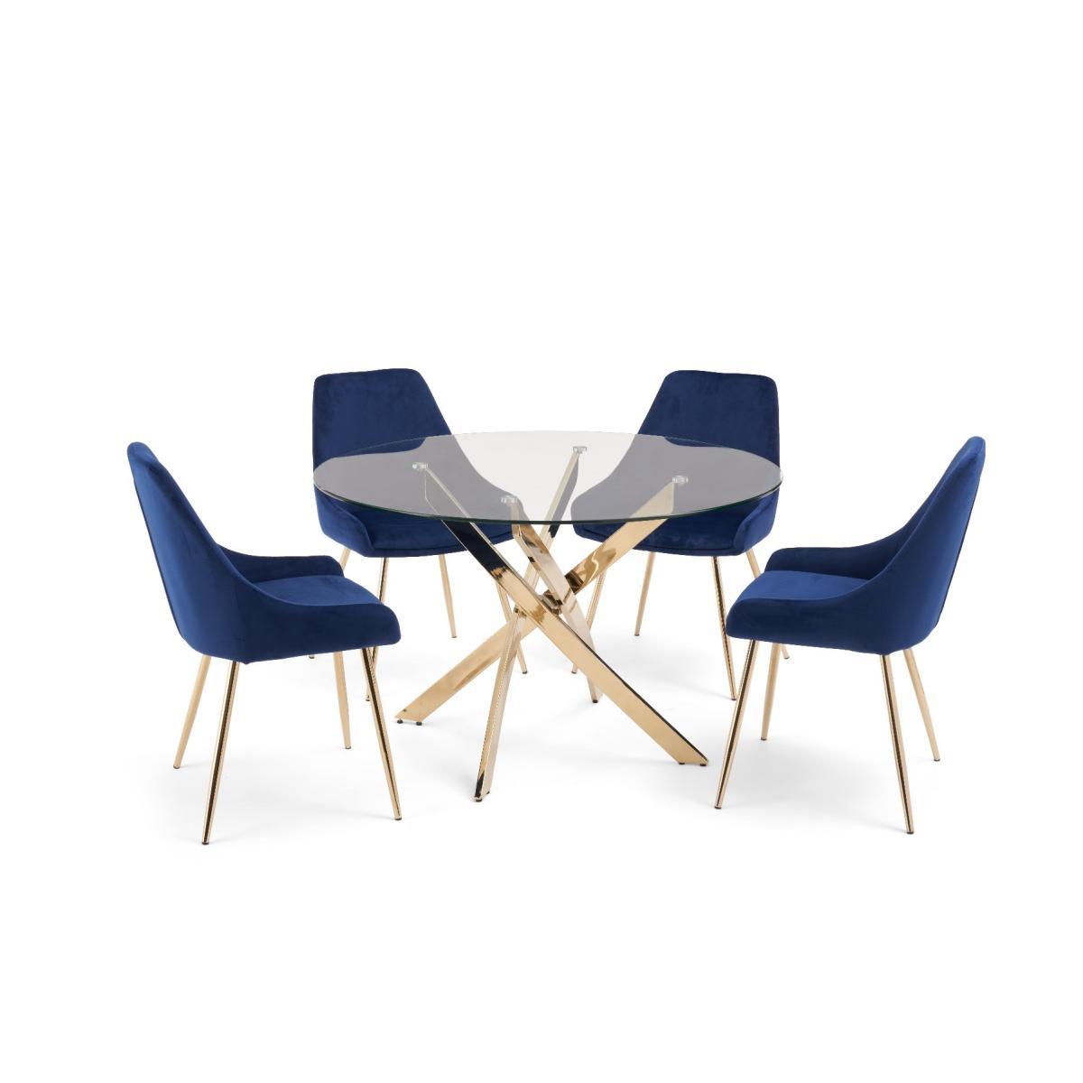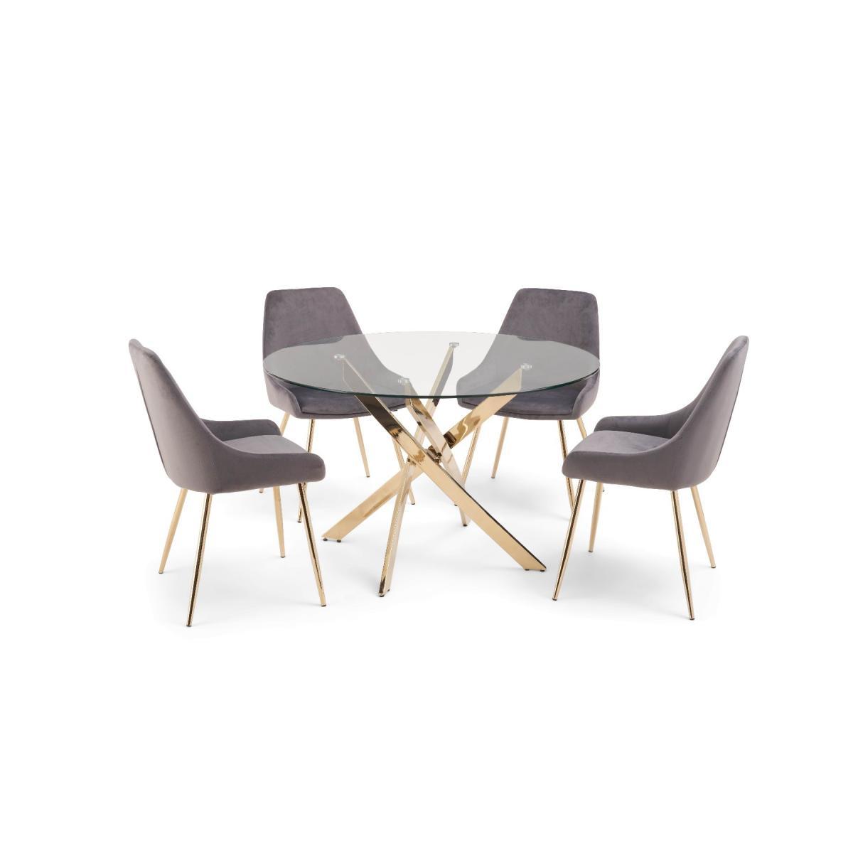 The detailed, sculpted base is the signature style of our Denver table, and at 120cm it’s the perfect size to seat four people comfortably. Pair with our elegant Fern chairs for a statement style. Ultra-modern glass top 120cm top - perfect for seating four people Pair with the Fern velvet chairs for ultimate style 12 month guarantee